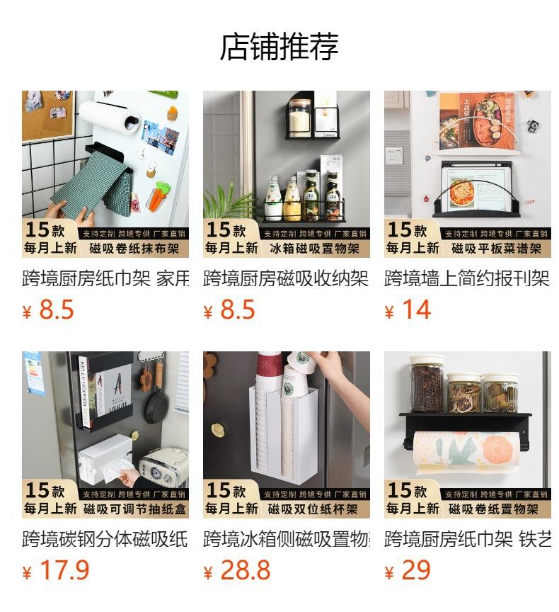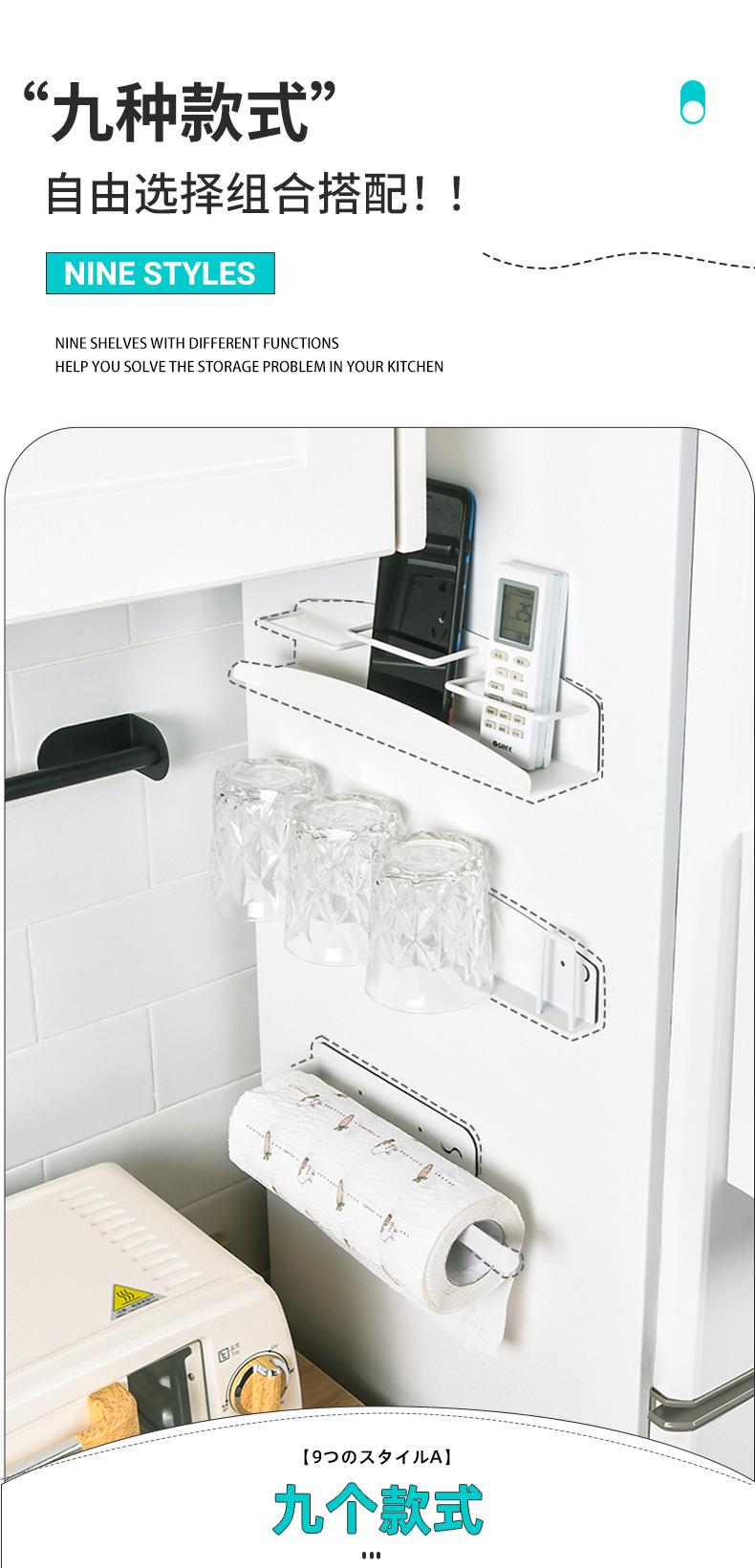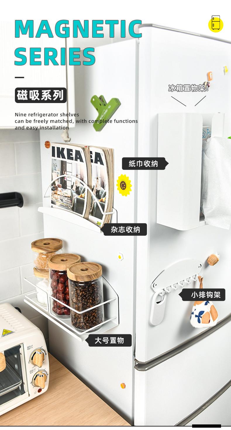 Estante de Almacenamiento para Cocina Doméstica Transfronterizo, Montado en Pared, Sin Perforación, Estante de Almacenamiento Magnético, Tipo Magnético Lateral para Refrigerador