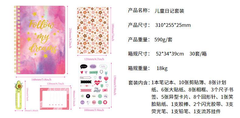 | Stickers de scrapbook transfronterizos set de diario DIY para niños juego completo de papelería para diario set de libreta de presupuesto |