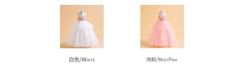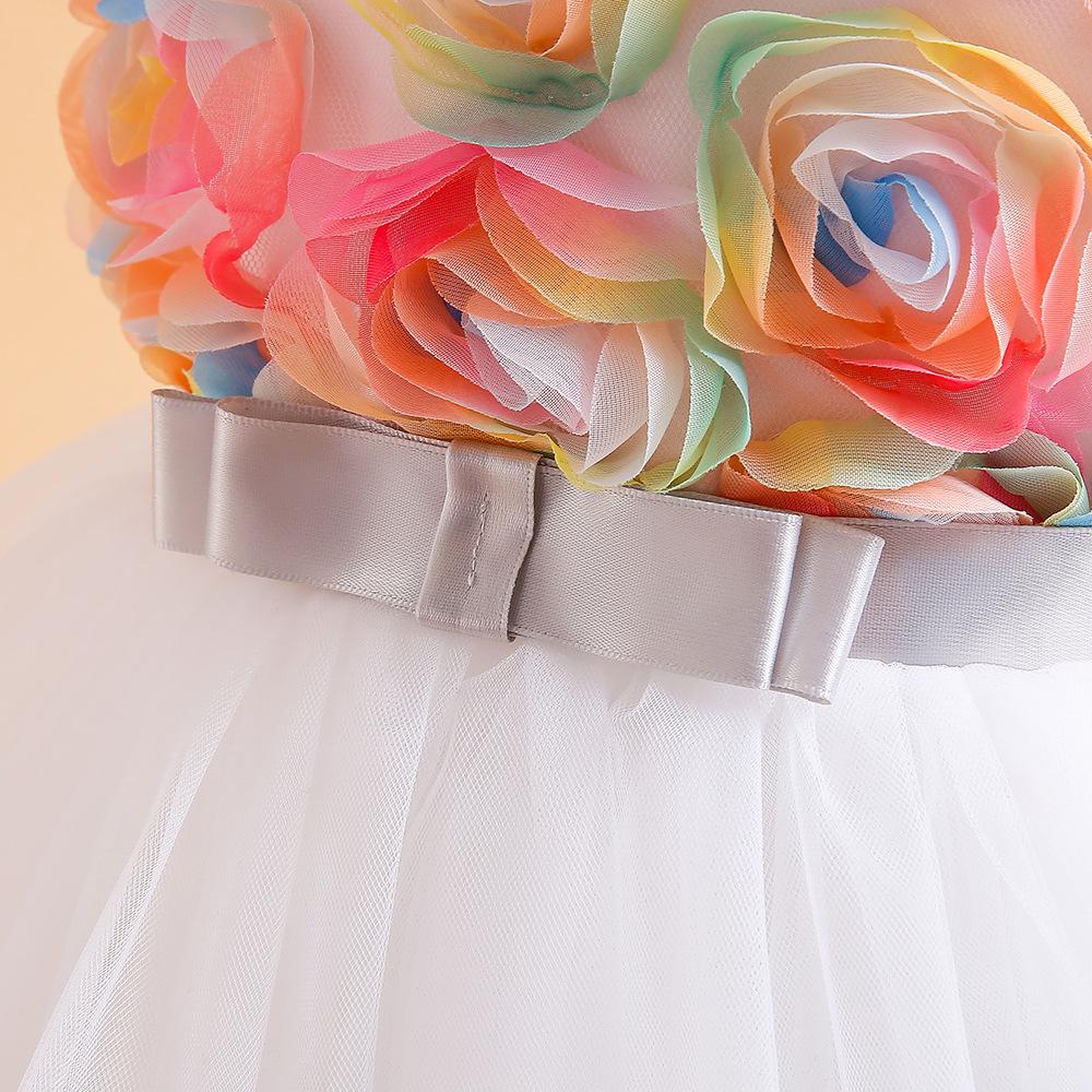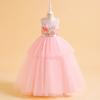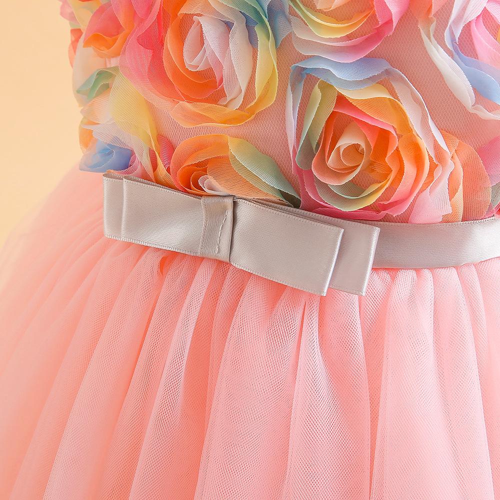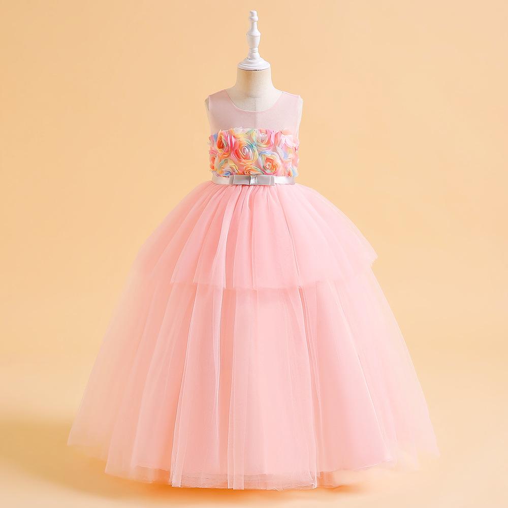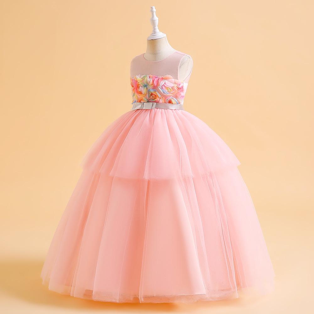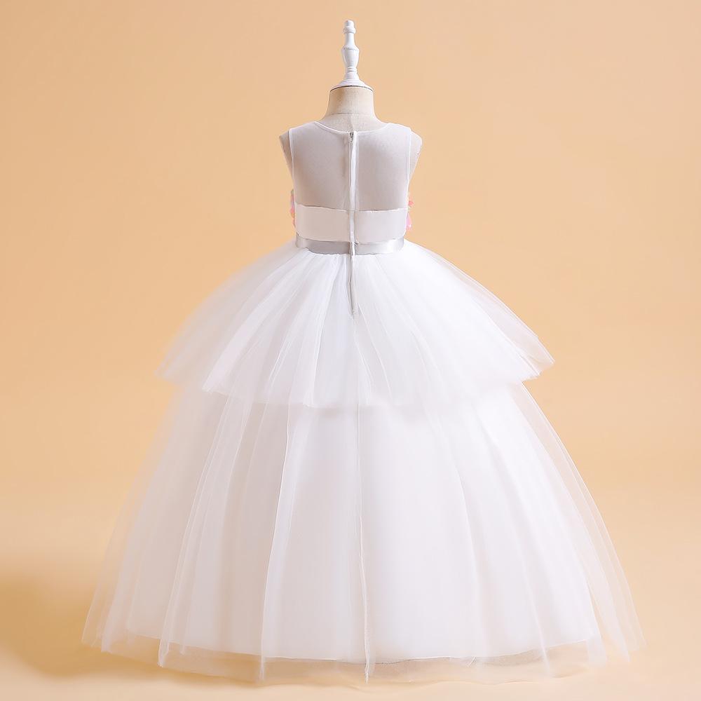 Vestido de Princesa de Banquete Amazon Nuevo Transfronterizo Vestido de Princesa de Pastel de Malla Vestido sin Mangas con Flores Vestido para Niña de las Flores