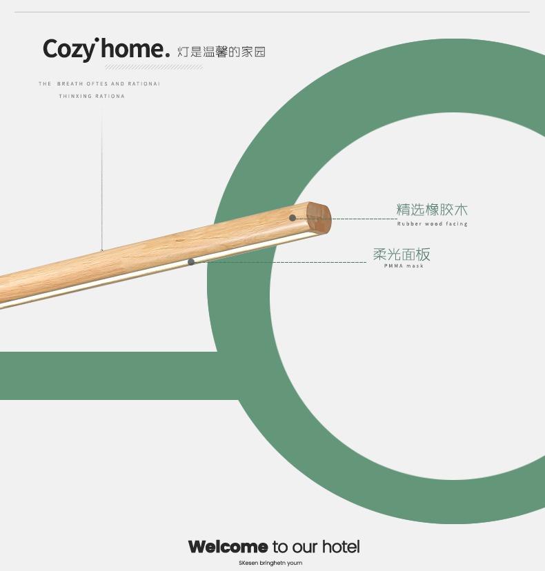 Lámpara de araña nórdica simple con forma de tronco LED para restaurante, lámpara de barra larga para oficina, mesa de comedor, iluminación para salón de té