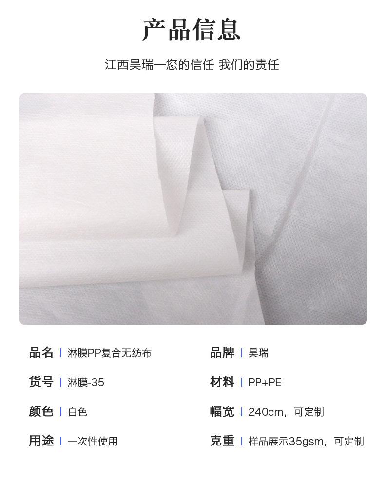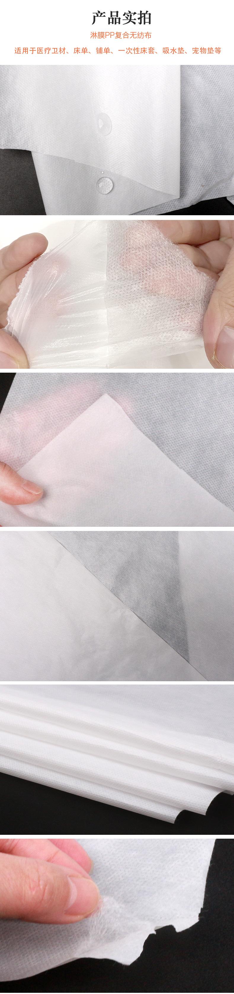 Tela no tejida básica blanca recubierta para sábanas desechables, almohadilla de belleza, almohadilla impermeable de aislamiento, tela recubierta
