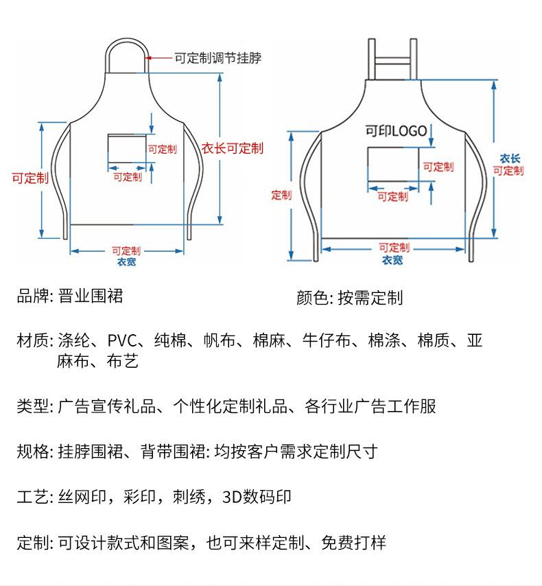 Delantal de media longitud transfronterizo Impermeable y a prueba de aceite Delantal personalizado Mantel Chaleco Diario Logotipo sellado Delantal para hornear
