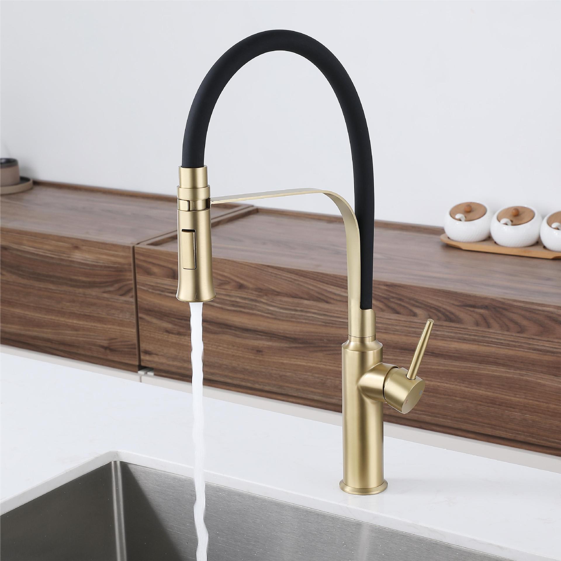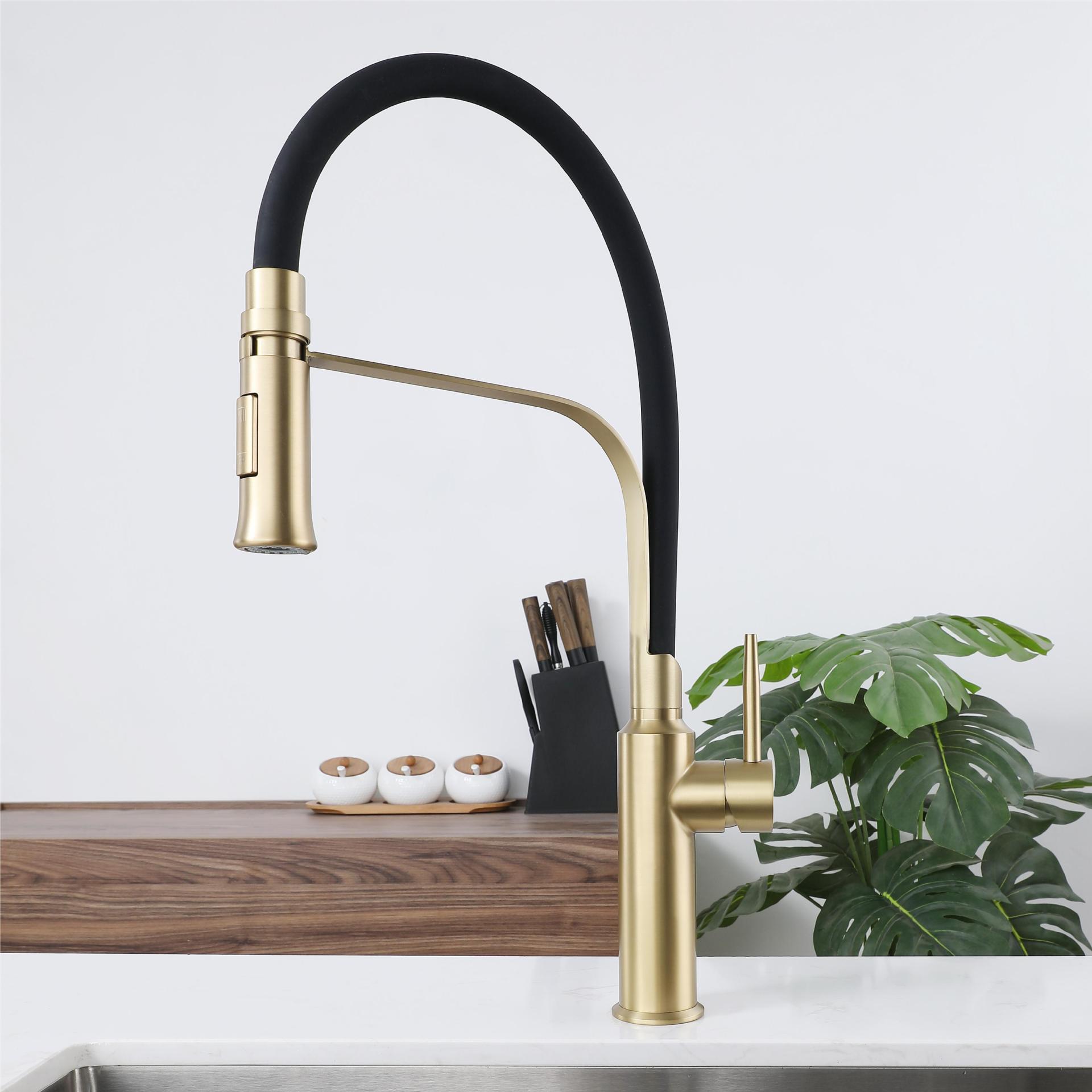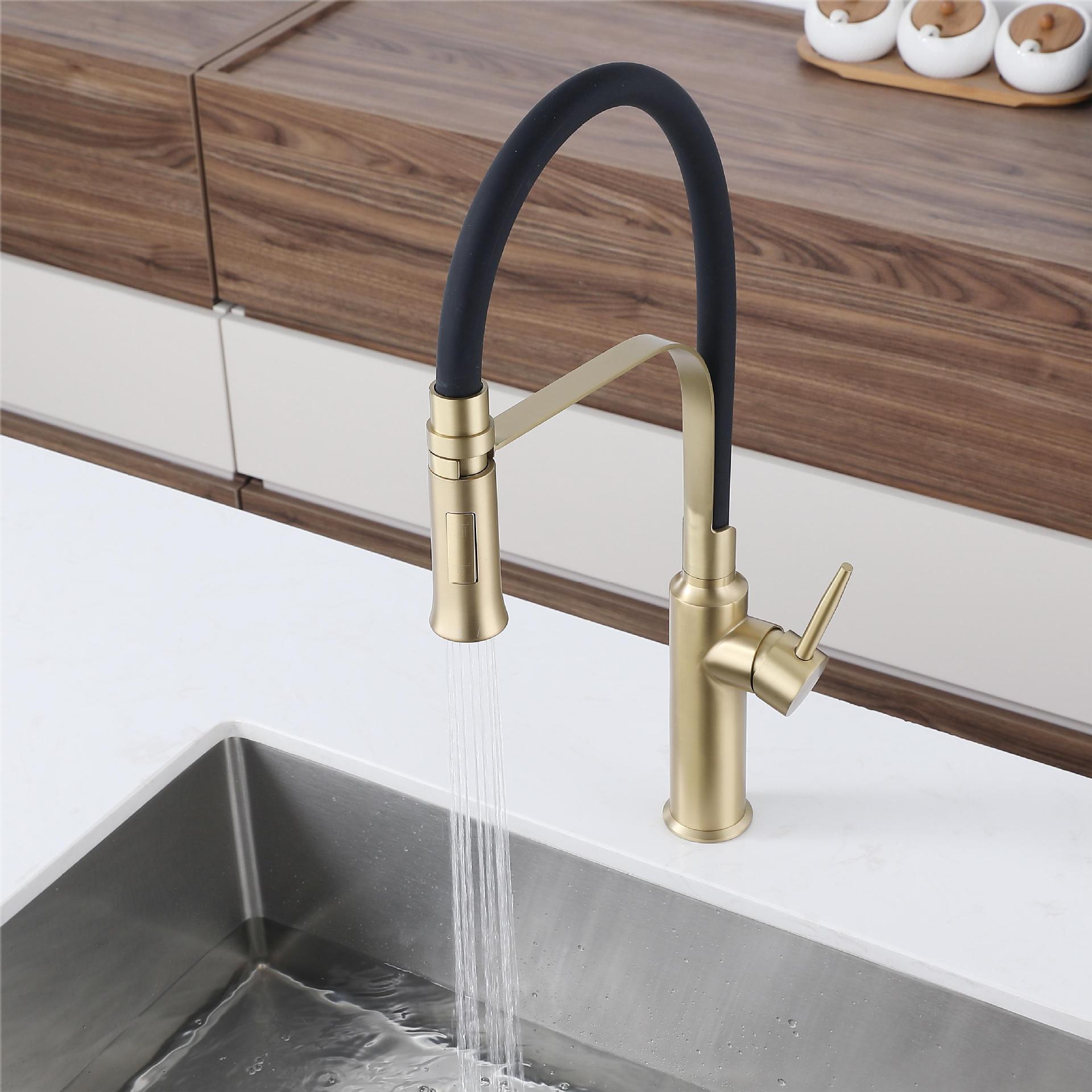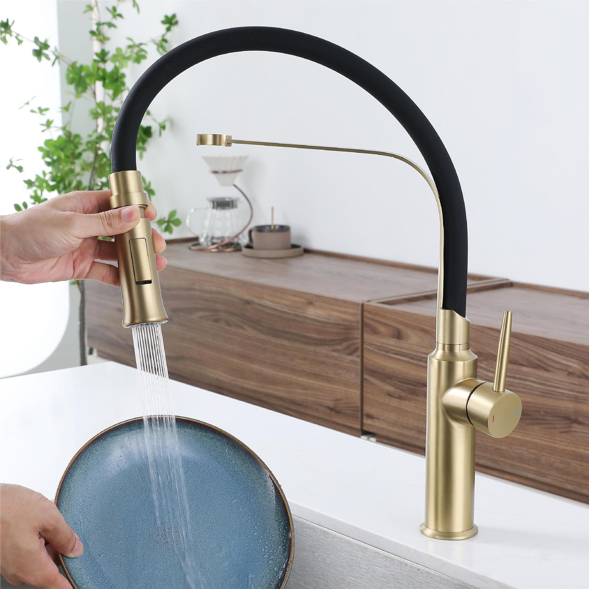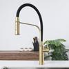 Grifo extraíble de acero inoxidable para cocina, color dorado, para fregadero de agua fría y caliente, para verduras, grifo universal telescópico giratorio a prueba de salpicaduras