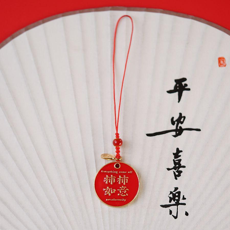 Texto Estilo Chino Caqui Ruyi Buena Suerte Rojo Festivo Colgante Tejido Llavero Regalo Llavero Cadena para Hombres y Mujeres