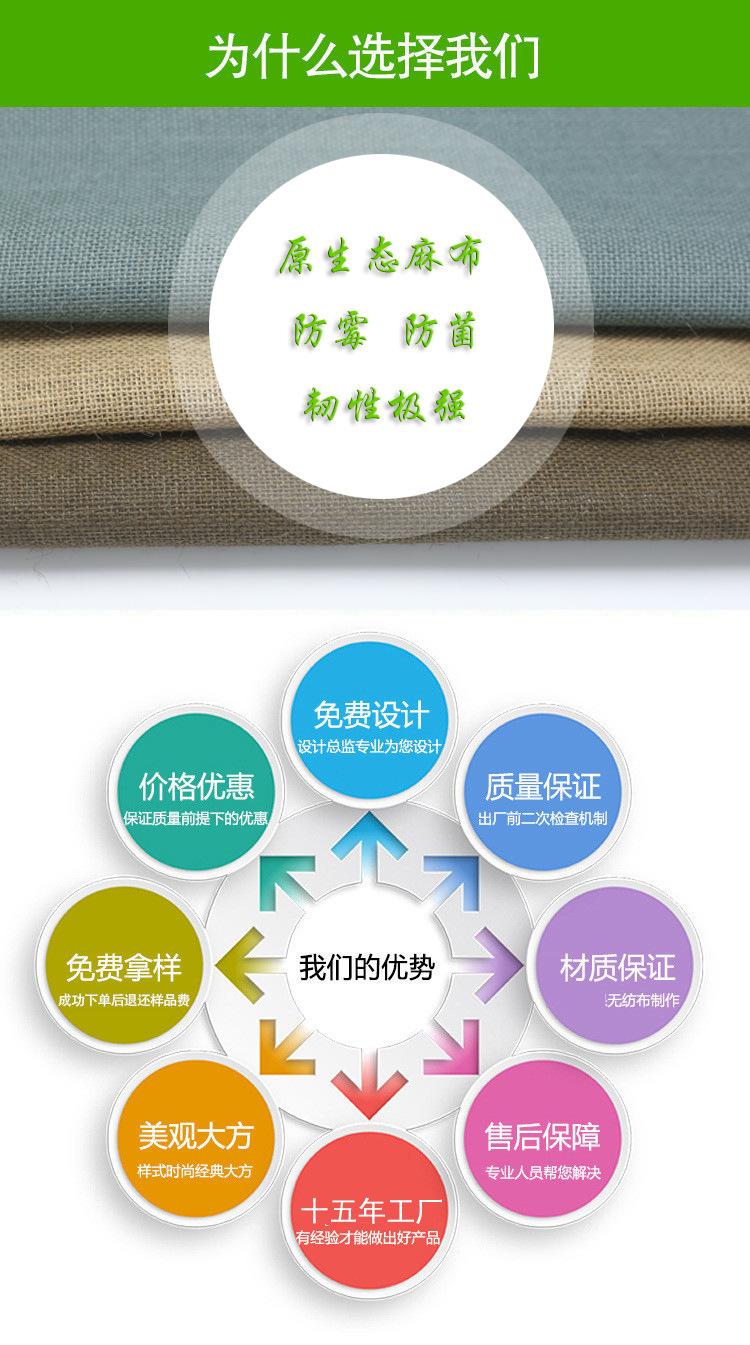 【Material】: Tela de yute recubierta, tela de lino, cincha de algodón de mano con núcleo de algodón en el medio El material de yute es antibacteriano, antiinsectos y antitermitas. |