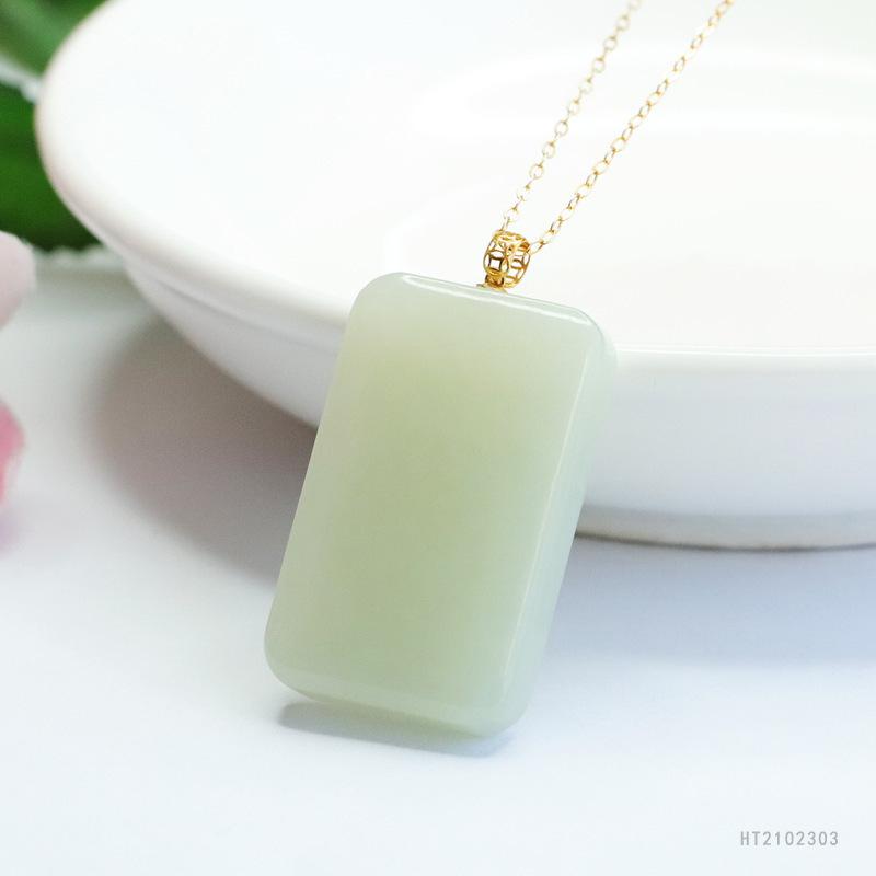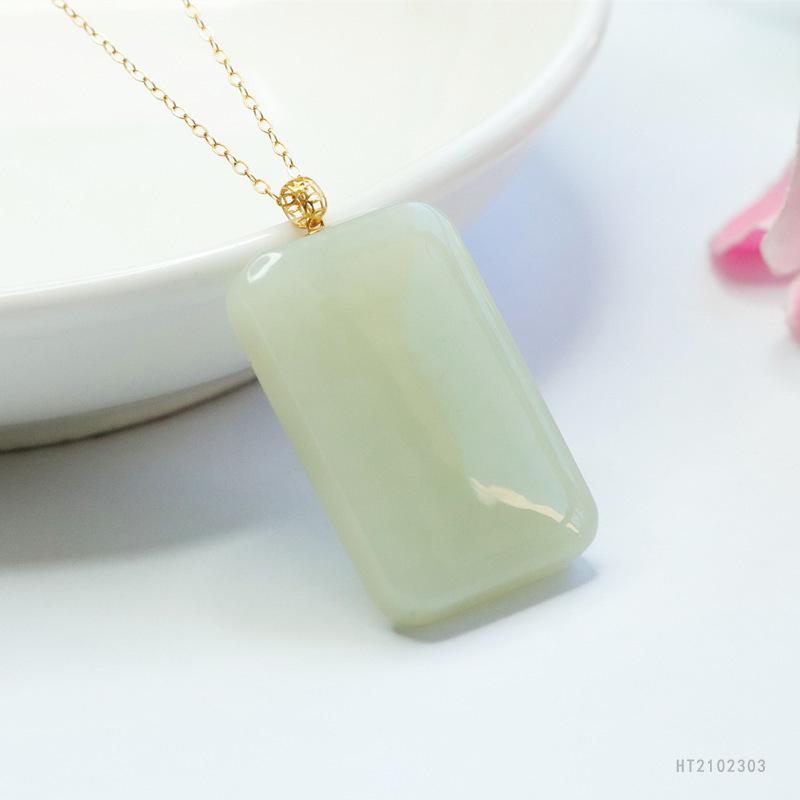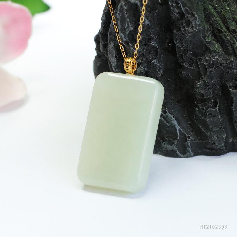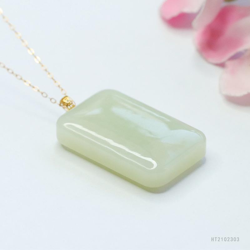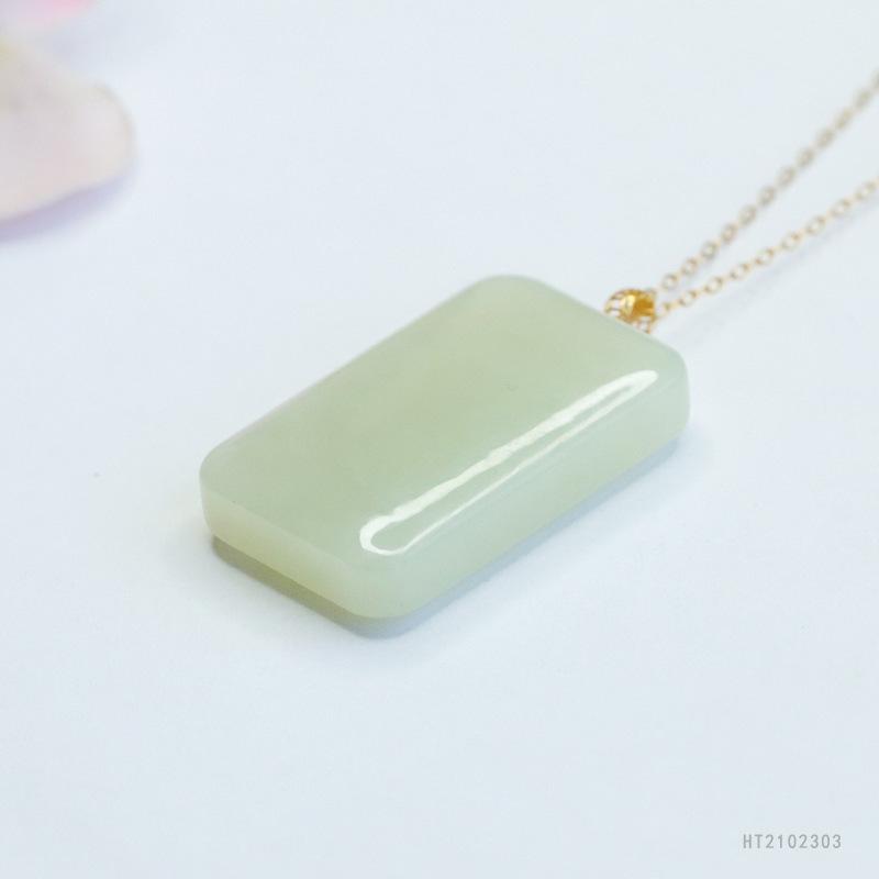 18k gold inlaid hetian jade square card (including silver chain) ht2102303