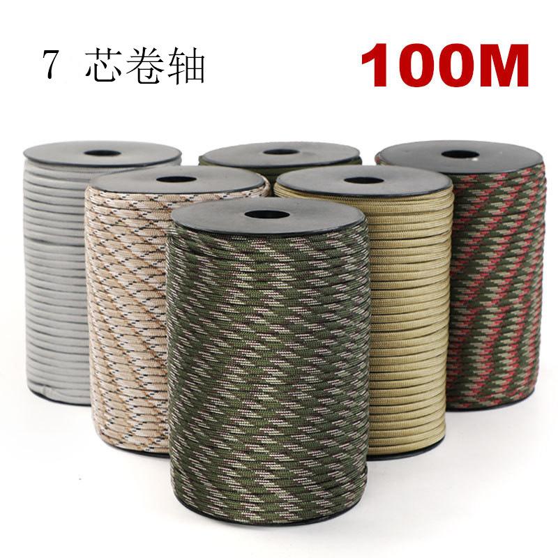 Cuerda de paraguas de polipropileno de 7 núcleos para acampar al aire libre, rollo de 100 metros, paracaidistas, tracción, rescate, tienda de campaña atada, cuerda a prueba de viento, cuerda de escalada
