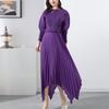 Vestido largo irregular de talla grande, estilo occidental, plisado, de alta gama, con mangas murciélago y cordones en la cintura, primavera 2023