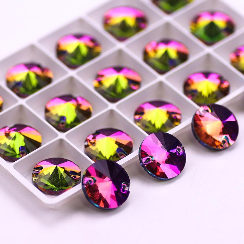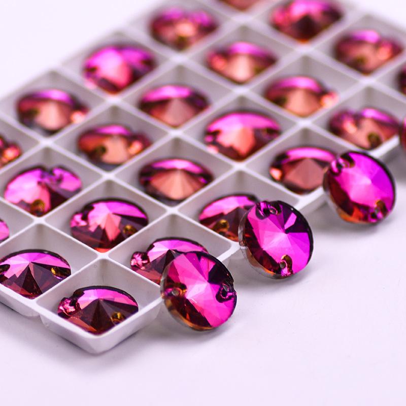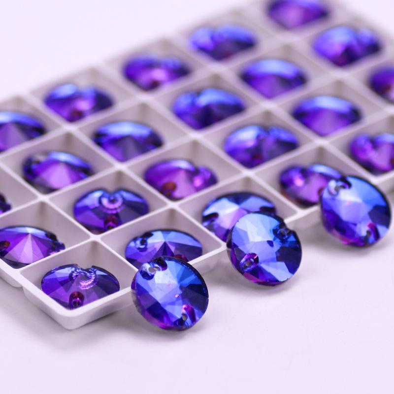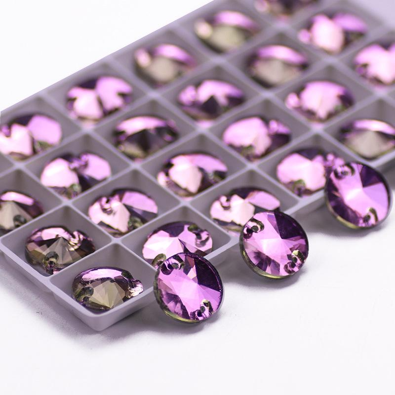 Nuevo satélite redondo de fondo plano con hebilla plana, cosido a mano, piedra, terciopelo morado, verde, rojo, llama, cristal, diamante, accesorios de ropa DIY