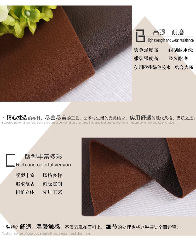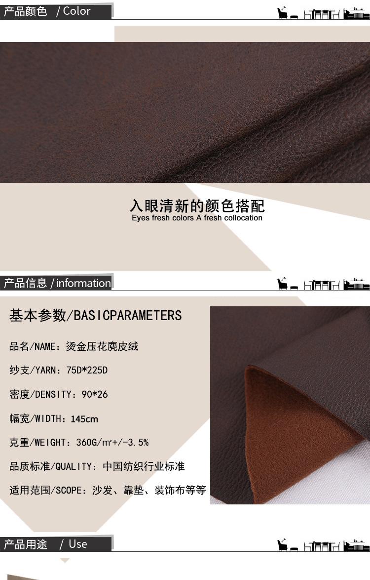 La empresa también puede proporcionar triple prueba (etiqueta DuPont), retardante de llama (estándar británico) según los requisitos del cliente.5852), antiestático, punzonado, caída de plástico y otros posprocesamientos,Podemos personalizar y desarrollar diversos tipos de estampado en caliente e impresión. También podemos personalizar y producir pulido en seco (color oscuro) según los requisitos del cliente.4Gamuza de calidad con alta solidez del color (utilizando tintes importados y artesanía profesional).
