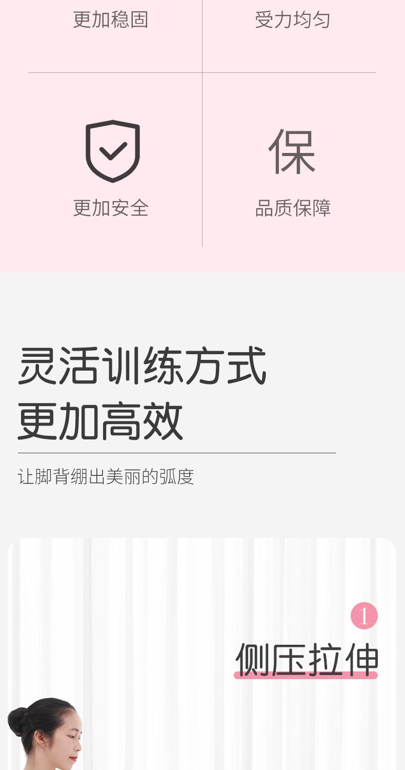 1. El enfoque principal es el entrenamiento de flexibilidad para el empeine alto y el empeine medio, mientras que la flexibilidad (textura) del empeine bajo se estira con bandas de resistencia.