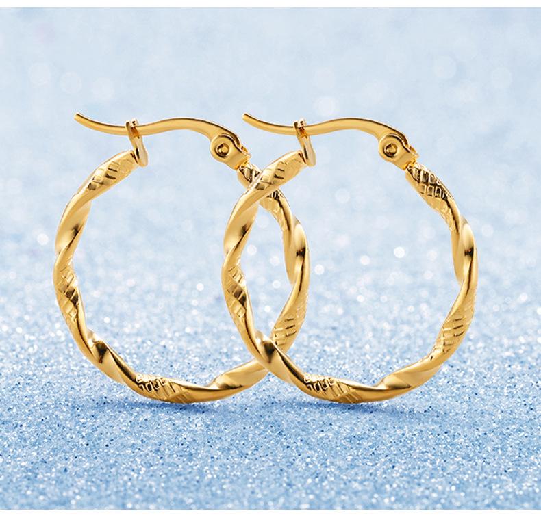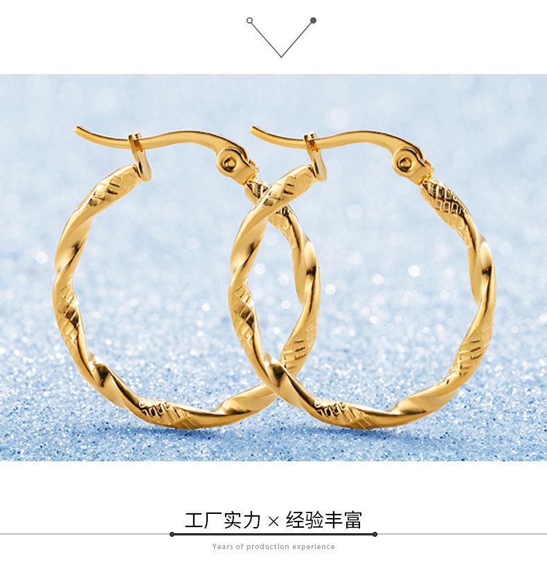 Pendientes de acero inoxidable de gran venta transfronteriza, combinables con todo, con forma circular, estilo viajero, con patrón irregular y retorcido.