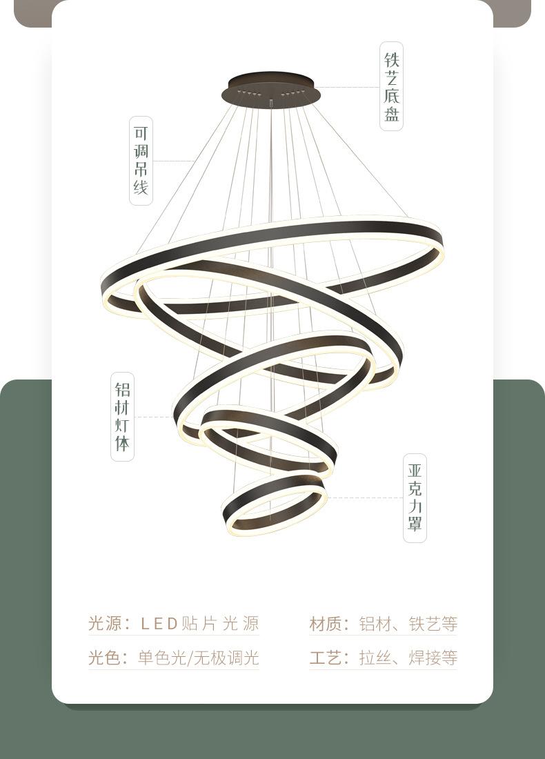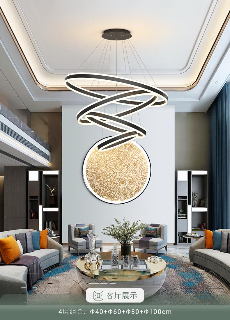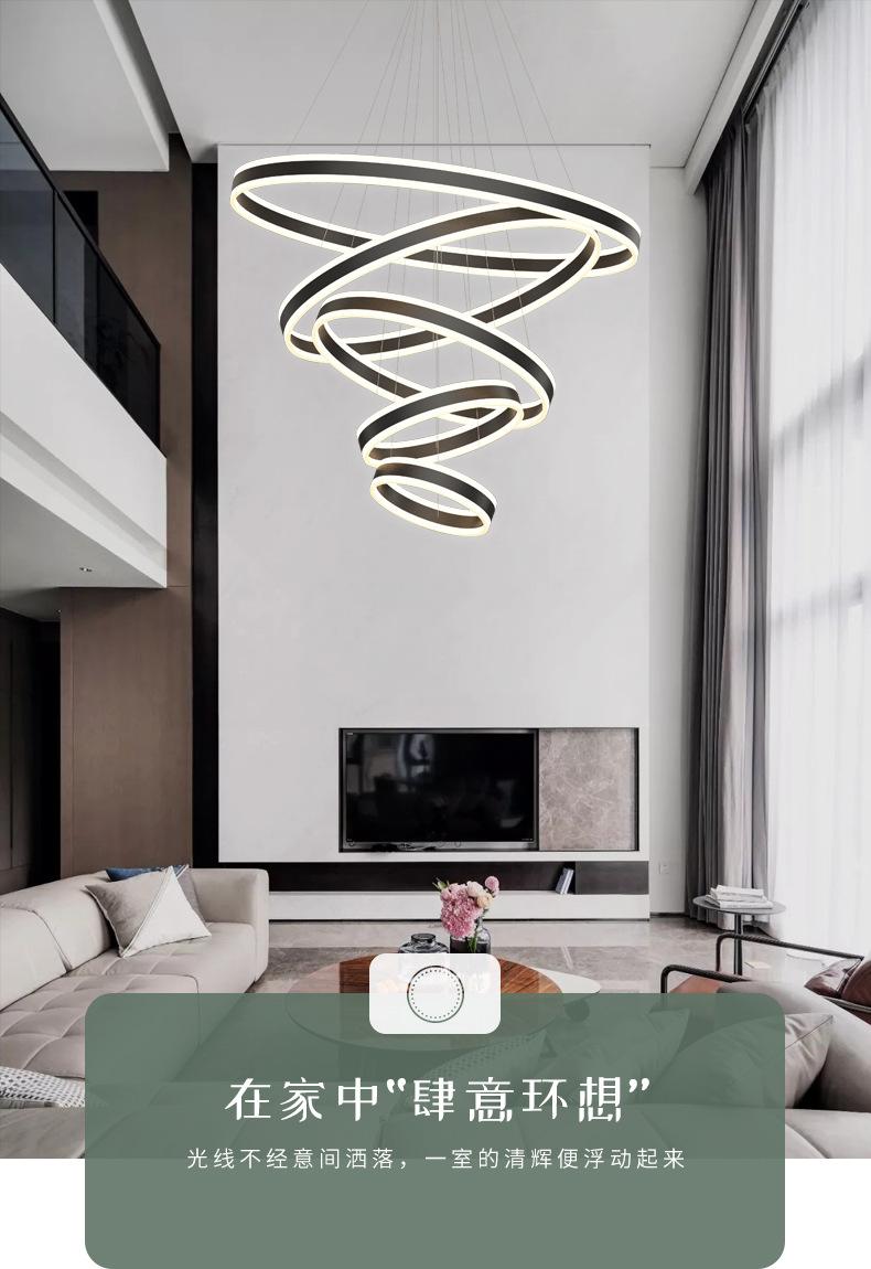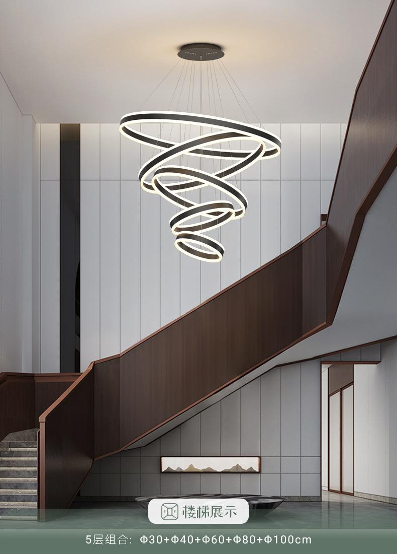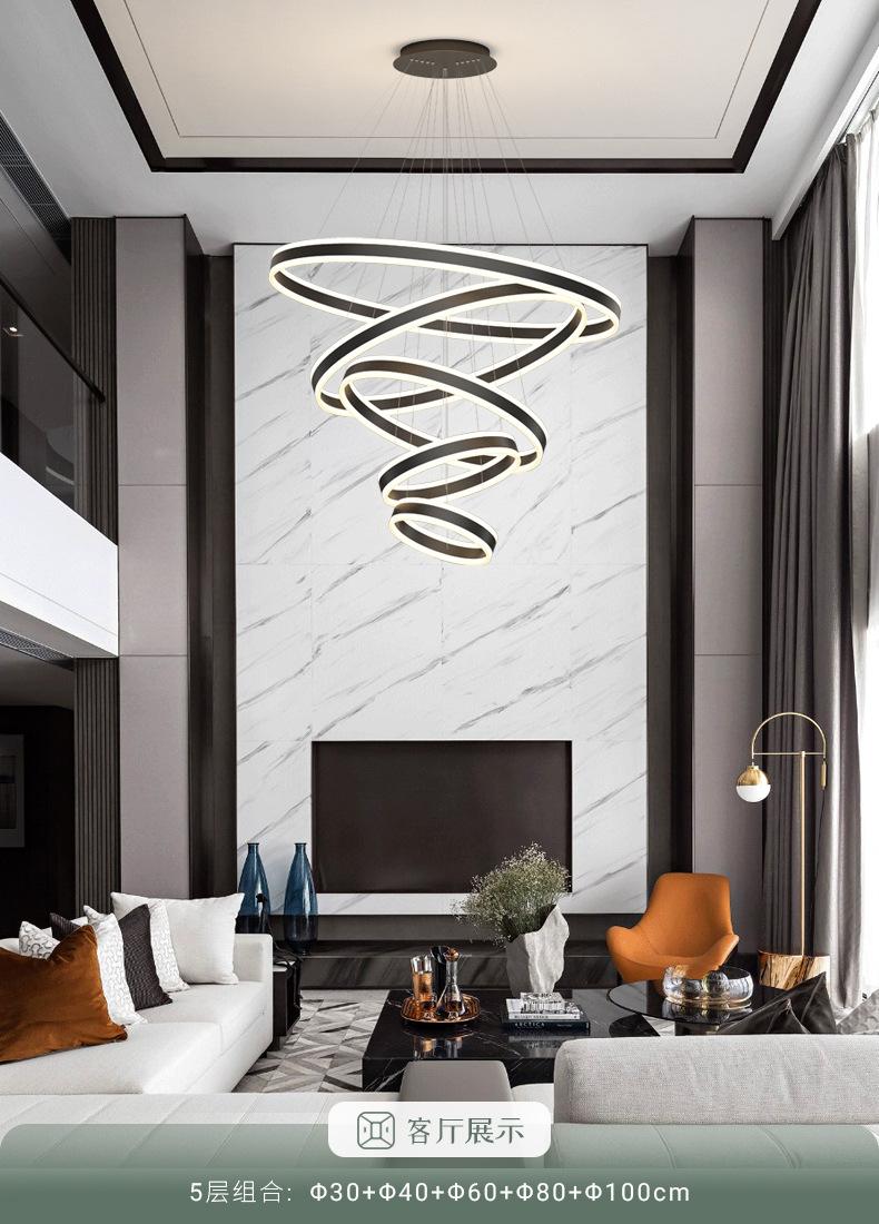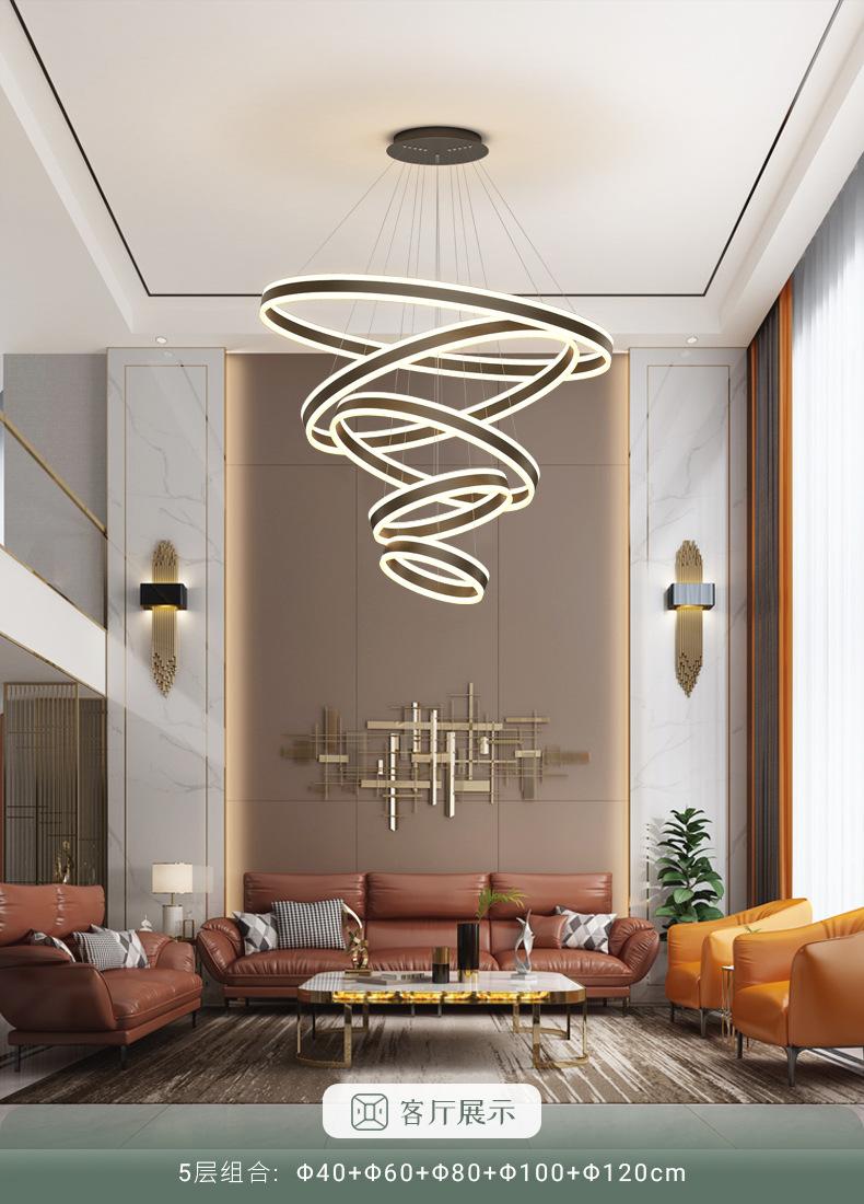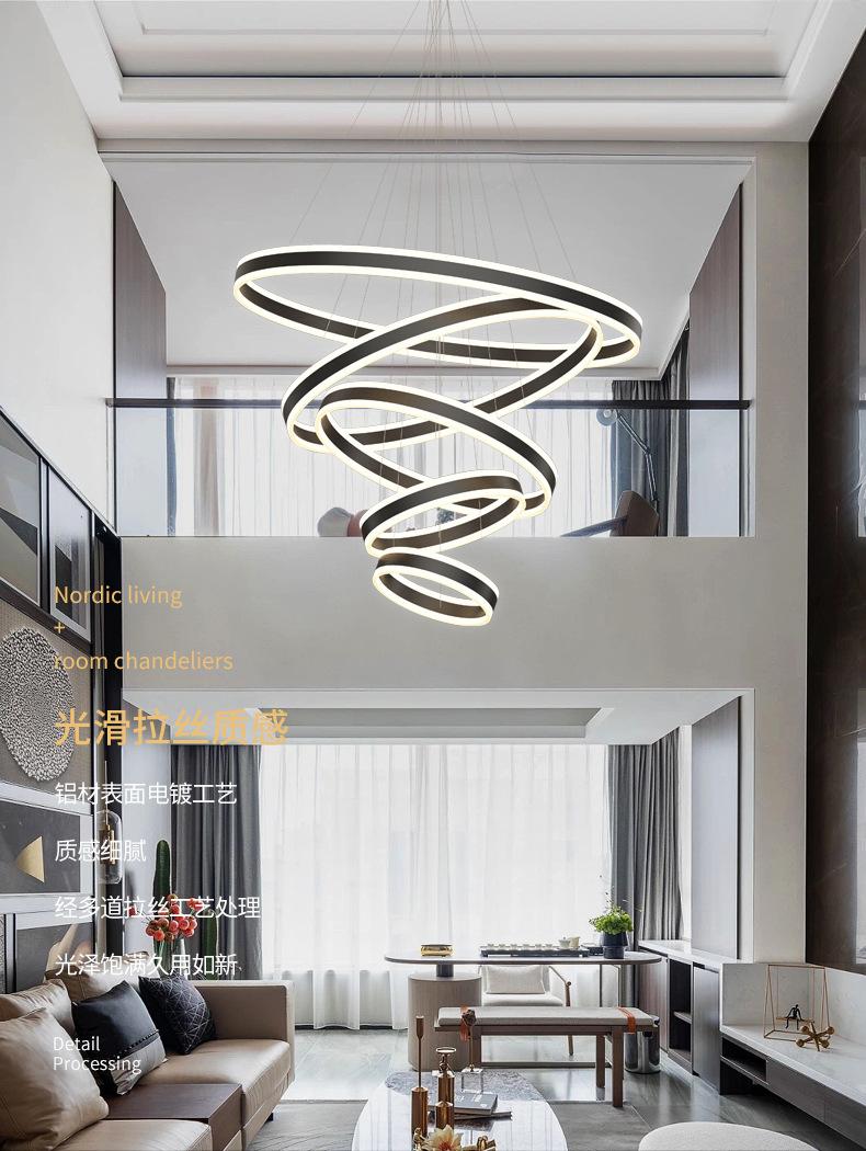 Lámpara de Araña Nórdica Moderna Simple para Sala de Estar Dúplex Escalera Luz Lujo Hueco Salto Apartamento Comedor Lámpara de Araña de Anillo