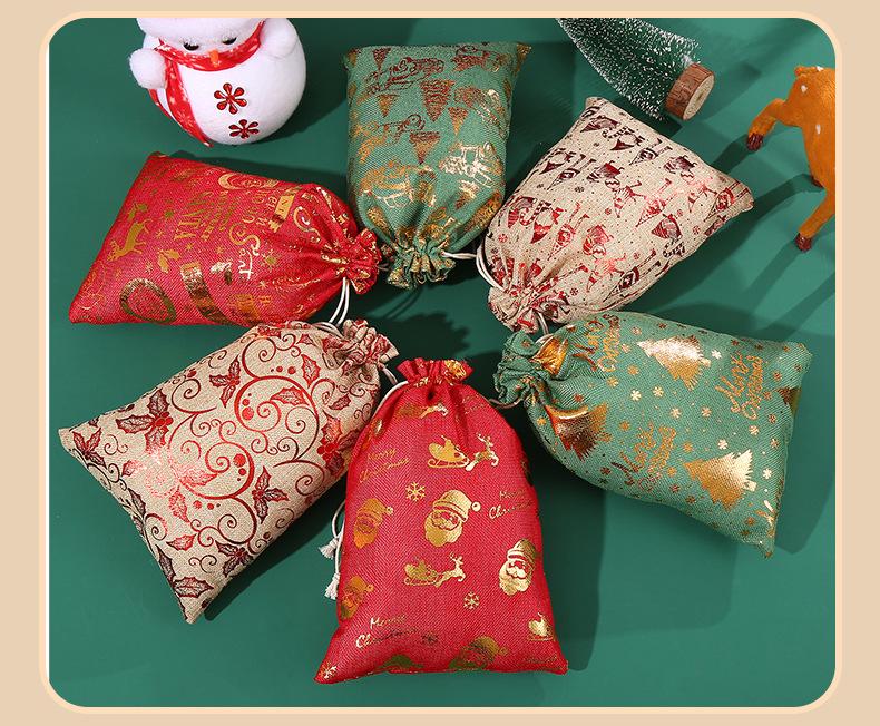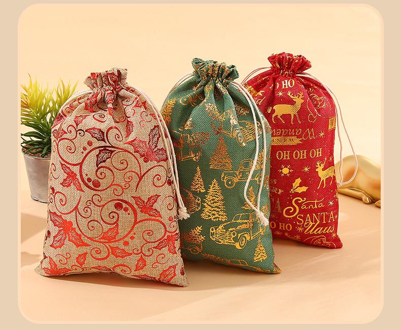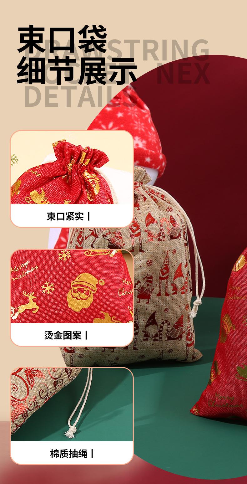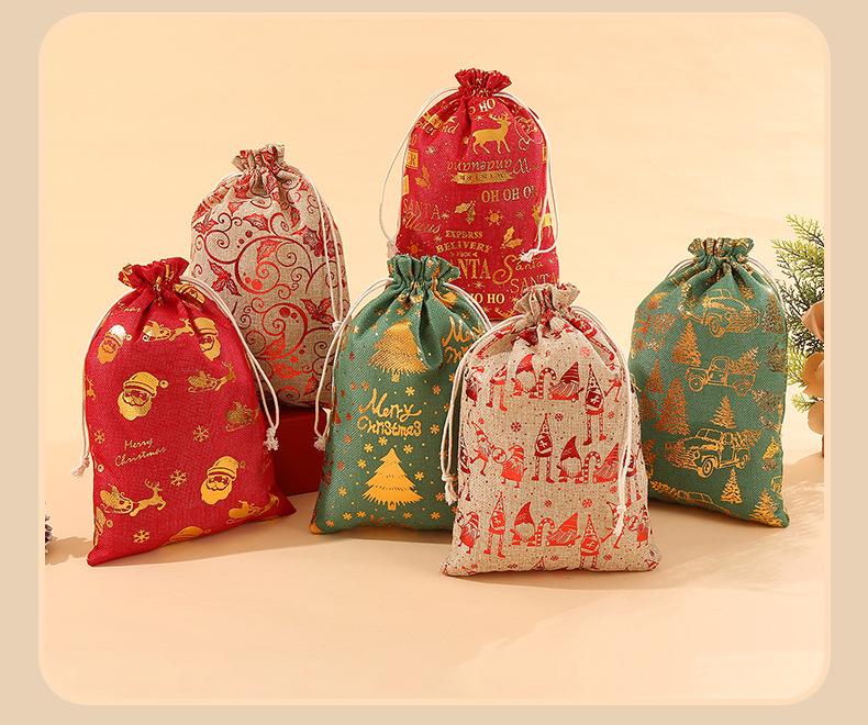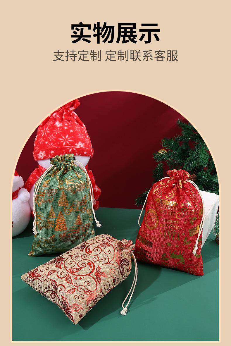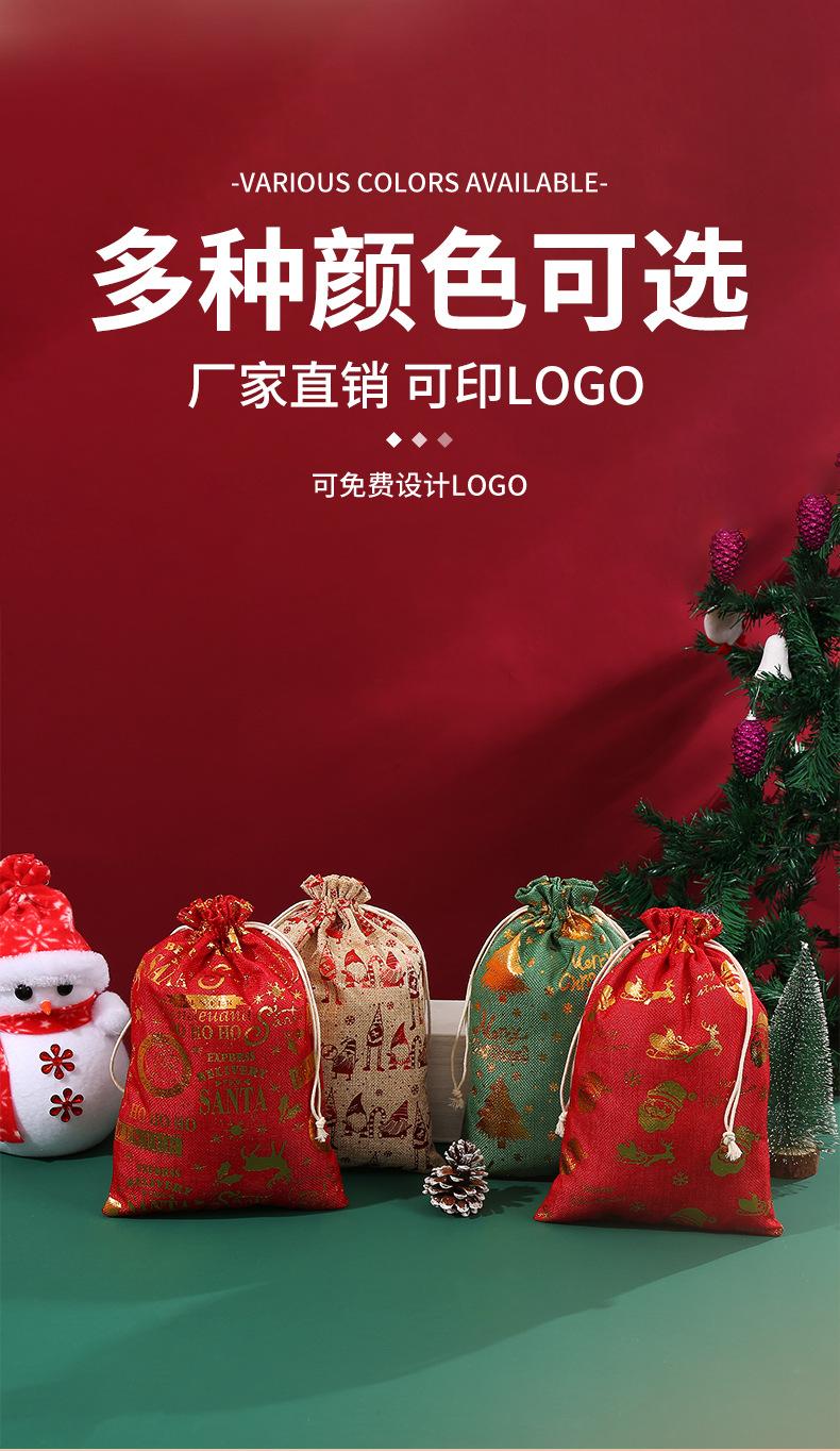 Bolsa de algodón dorada navideña grande transfronteriza Bolsa de regalo de dulces navideños Bolsa de regalo de Navidad de Nochebuena
