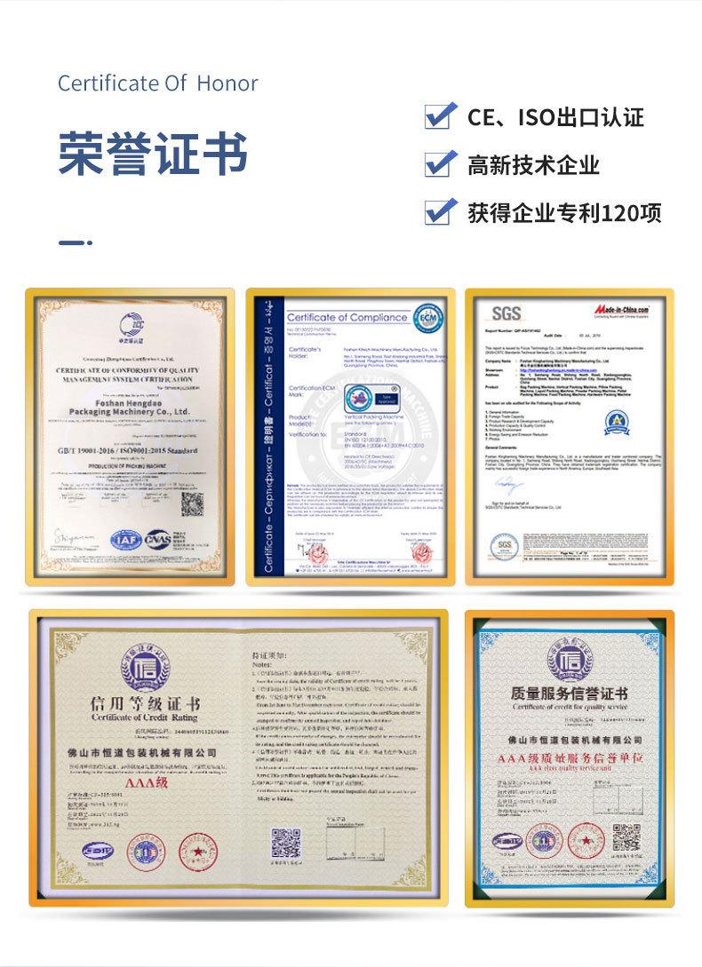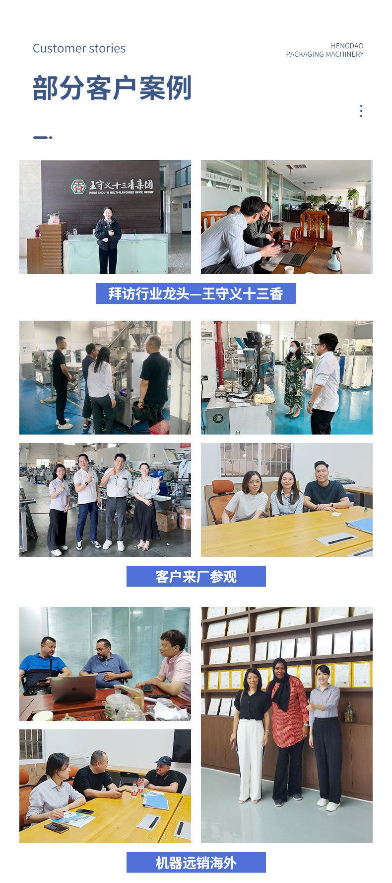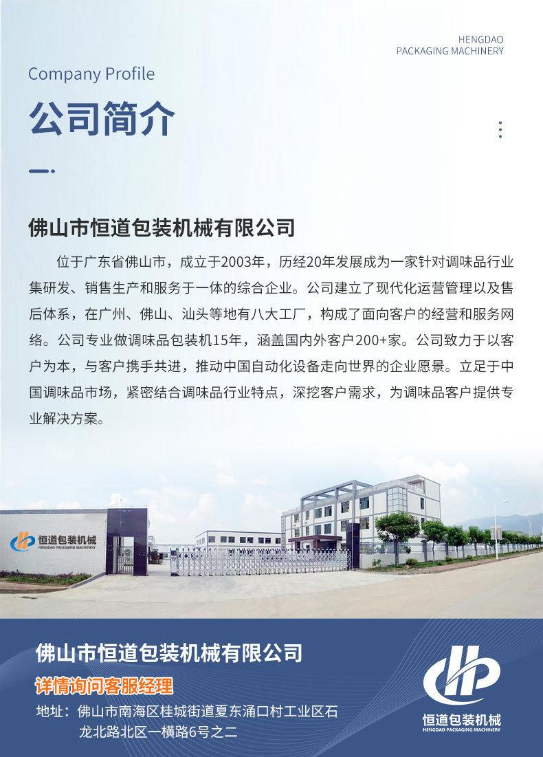 Foshan Hengdao Packaging Machinery Co., Ltd. es una empresa moderna de maquinaria de envasado que se centra en la I+D, el diseño, la fabricación y la venta de productos de maquinaria de envasado. Cuenta con un sistema de gestión de calidad completo y científico. Nuestra maquinaria de envasado opera principalmente con máquinas de envasado de gránulos, salsas líquidas, polvos, artículos de primera necesidad, ferretería, papelería, suministros médicos, componentes eléctricos, juguetes y otros tipos de maquinaria de envasado. Durante mucho tiempo, solo se ha confiado en el envasado manual, que es ineficiente y costoso. Foshan Hengdao Packaging Machinery Co., Ltd. ha solucionado este problema de envasado y lo ha probado con éxito. Ha instalado y modificado máquinas de envasado para numerosos grandes fabricantes. Si desea mejorar la eficiencia de producción y la calidad de sus productos, no dude en consultarnos.