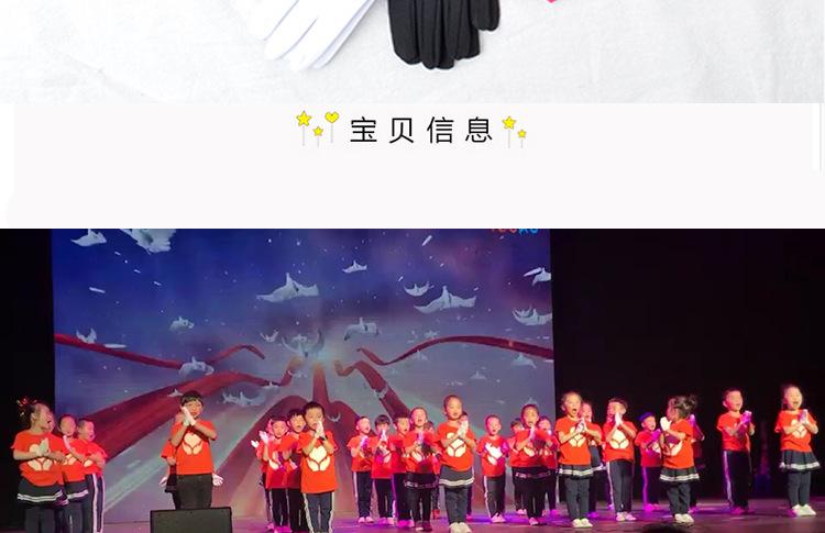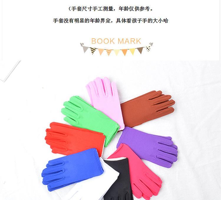 Guantes de actuación para niñosLa longitud total de los guantes es de 17.5cm, adecuado para niños de 5 a 10 años de edadLos guantes están hechos de seda de leche altamente elástica. Foto del dueño real