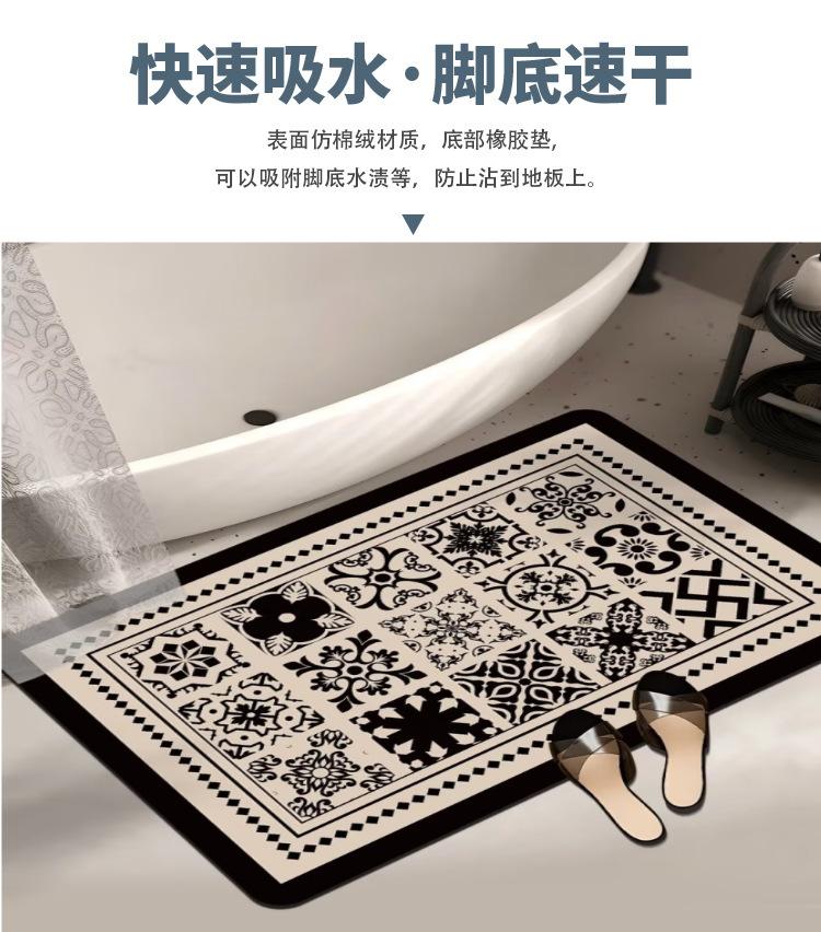 Felpudo absorbente antideslizante para baño, estilo retro crema, con borde cruzado, ligero y de lujo, absorbente para el baño