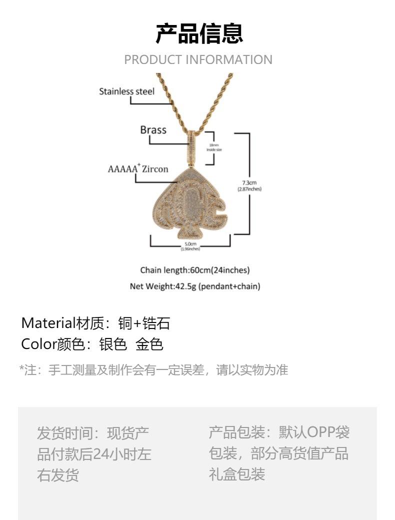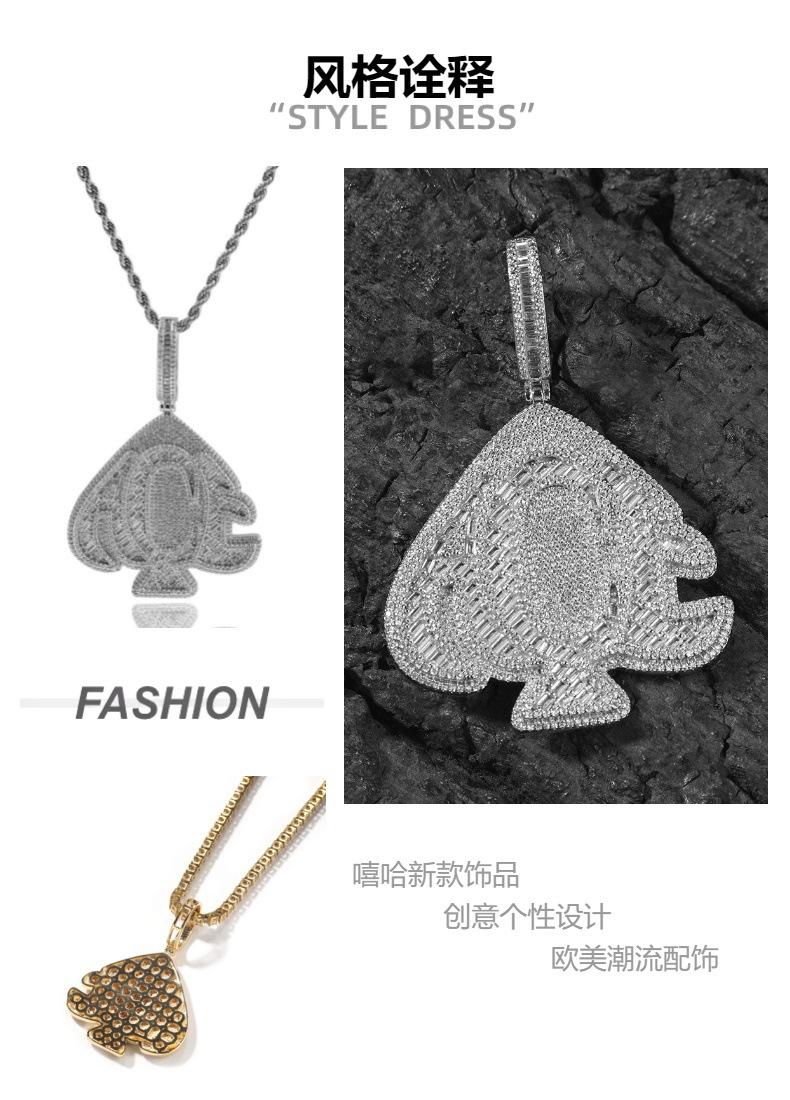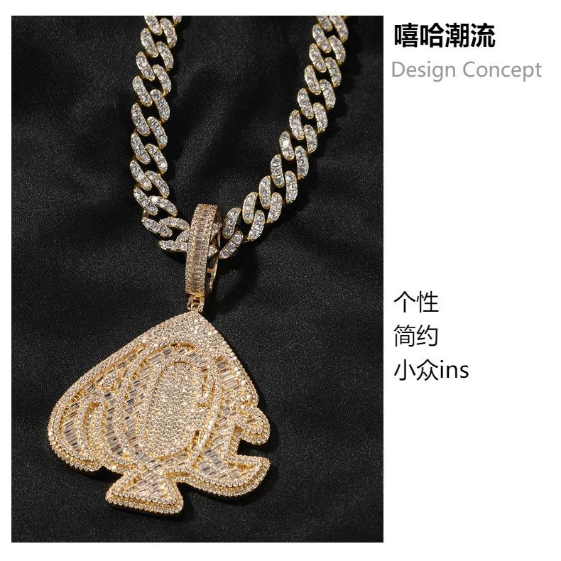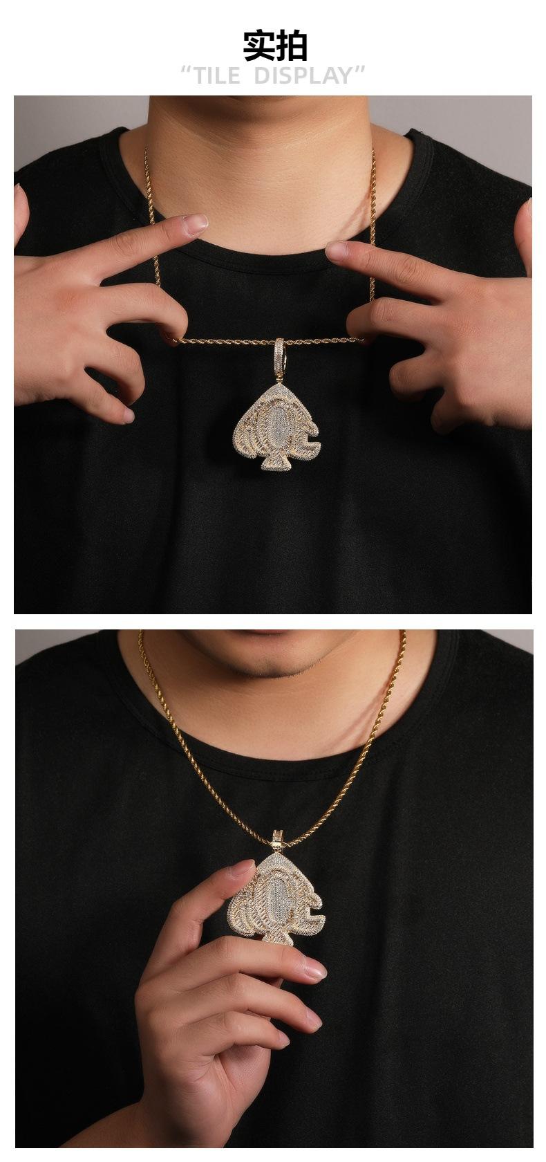 Venta directa transfronteriza, nuevo colgante de corazón de melocotón de hip hop europeo y americano con incrustaciones de cobre y circonitas, collar de hip hop con personalidad moderna para hombres.