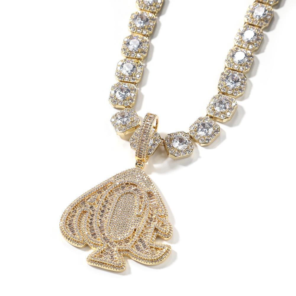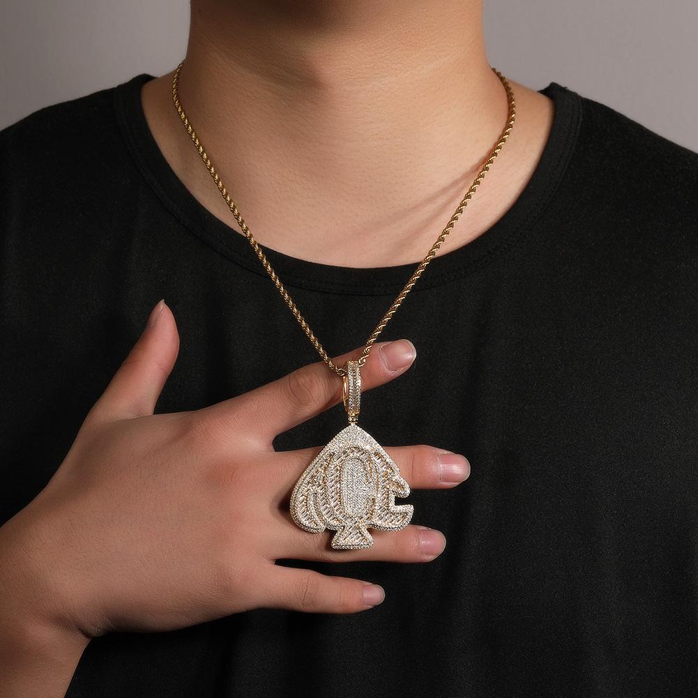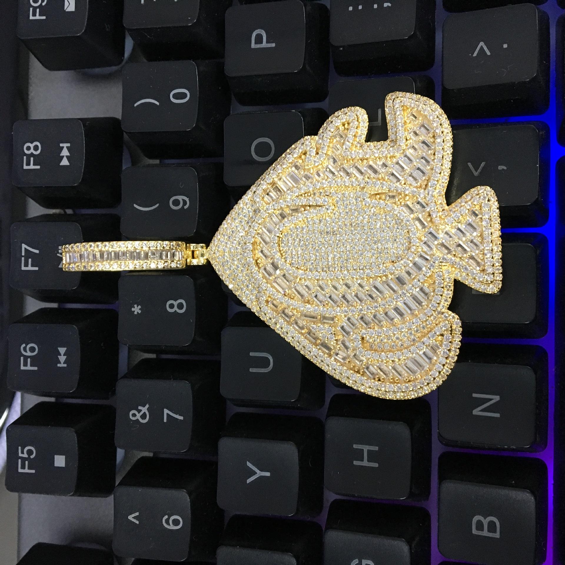 Venta directa transfronteriza, nuevo colgante de corazón de melocotón de hip hop europeo y americano con incrustaciones de cobre y circonitas, collar de hip hop con personalidad moderna para hombres.