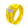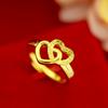 Anillo de Oro Chapado en Oro de 24K Anillo Abierto de Doble Corazón Oro Arena Popular Moda Coreana Boda para Mujer Imitación Modelo para Pareja