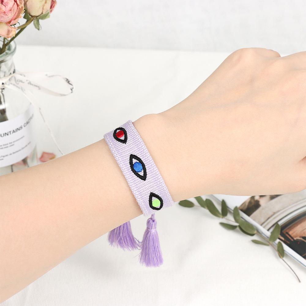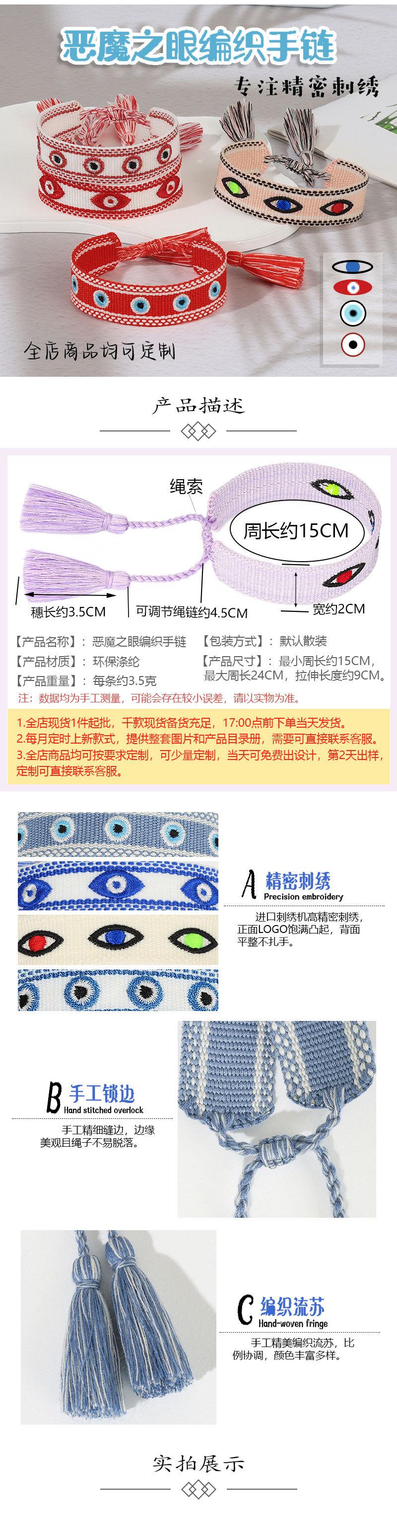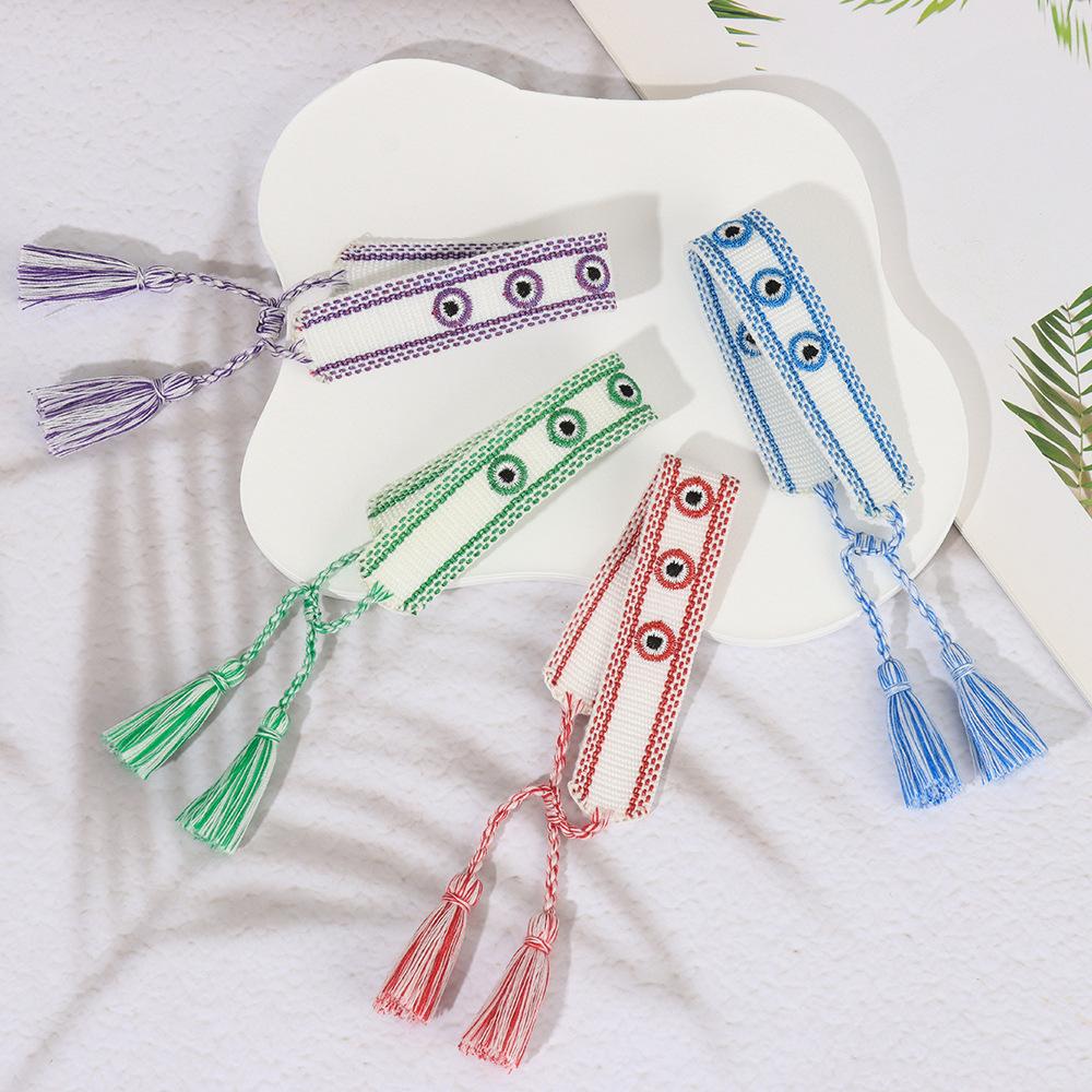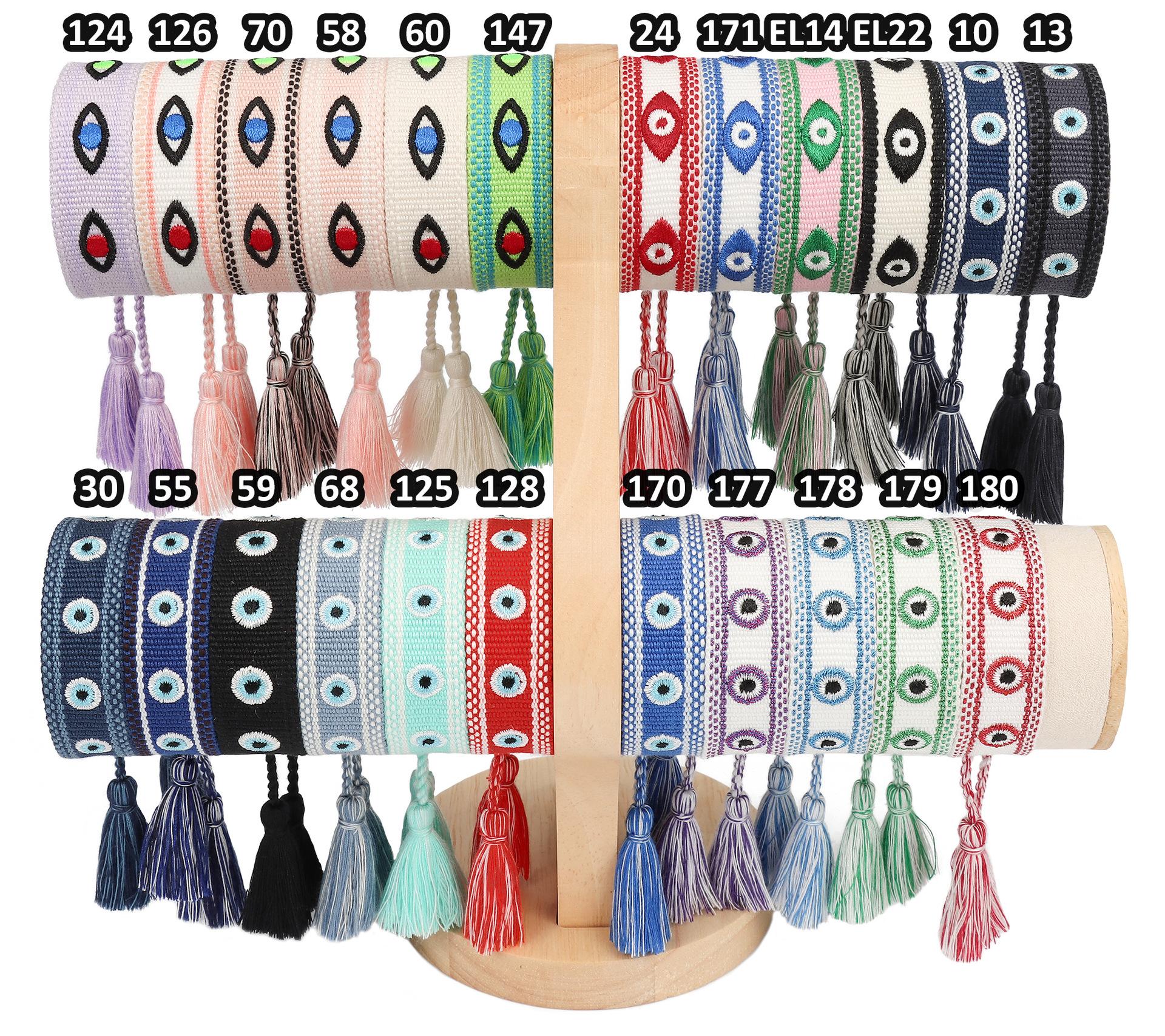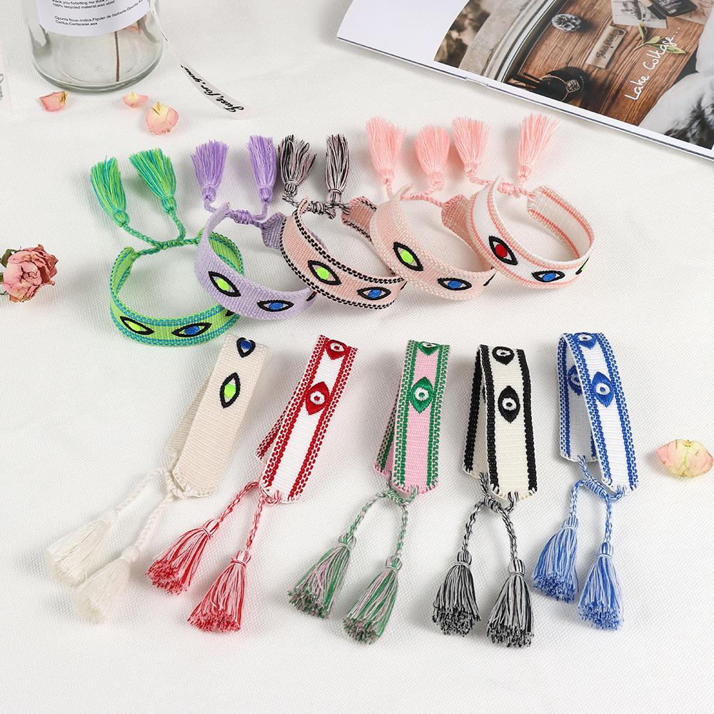 Pulsera Tejida Ojo del Diablo Europeo y Americano Transfronterizo para Mujer, Pulsera Bordada con Borla Tejida a Mano Ojo de la Suerte, Tejido Hecho a Mano