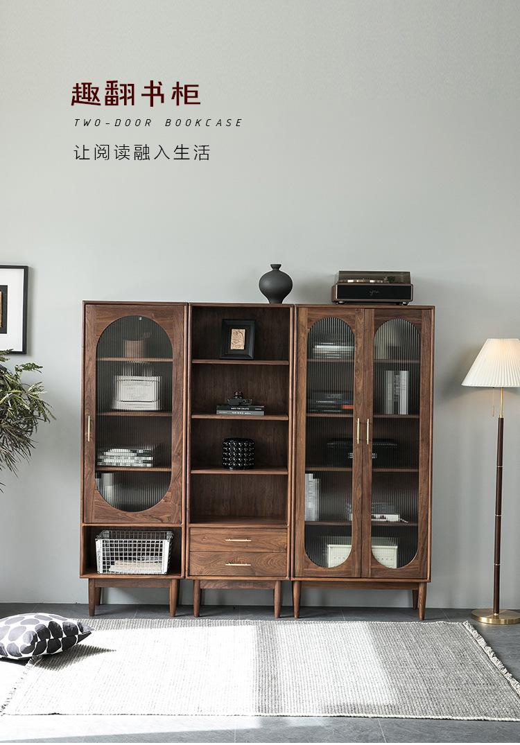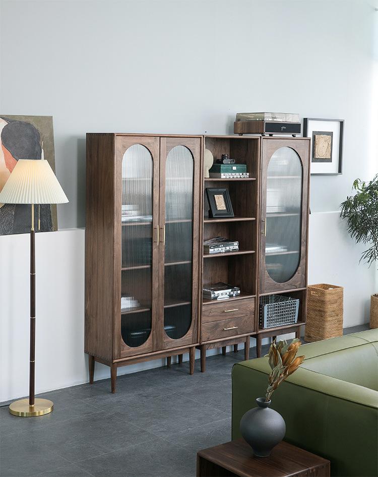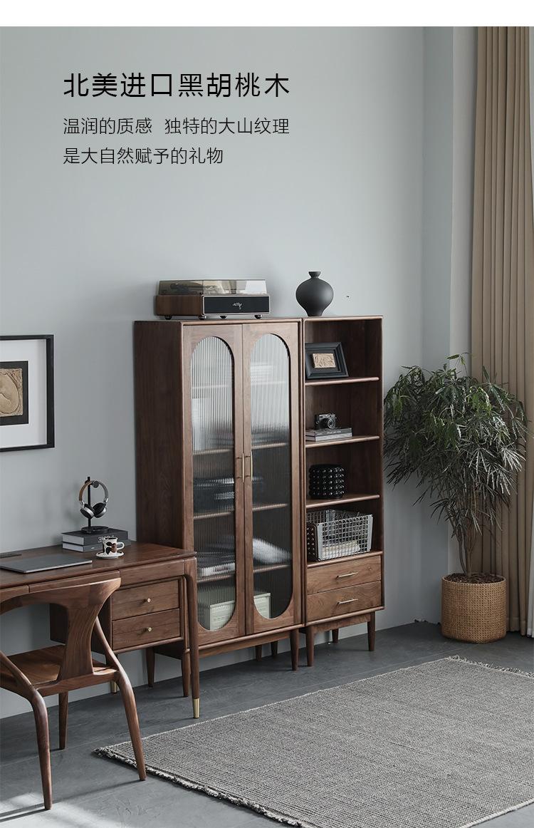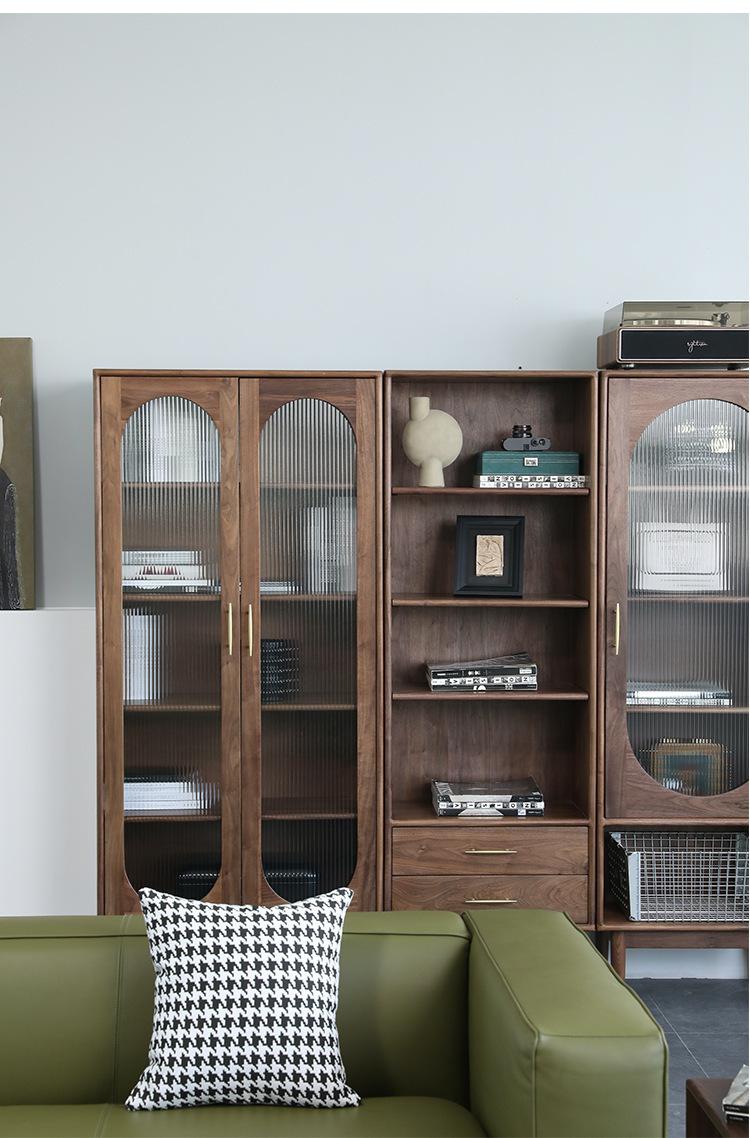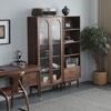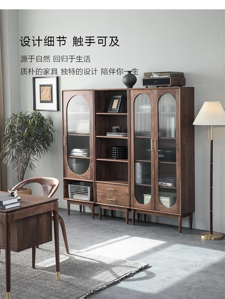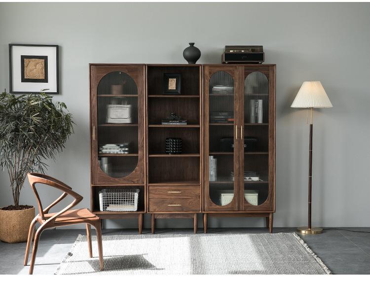 Combinación de librero de madera maciza nórdica con puerta de vidrio, estantería de madera de nogal negro japonés, vitrina moderna minimalista, librero para sala de estar