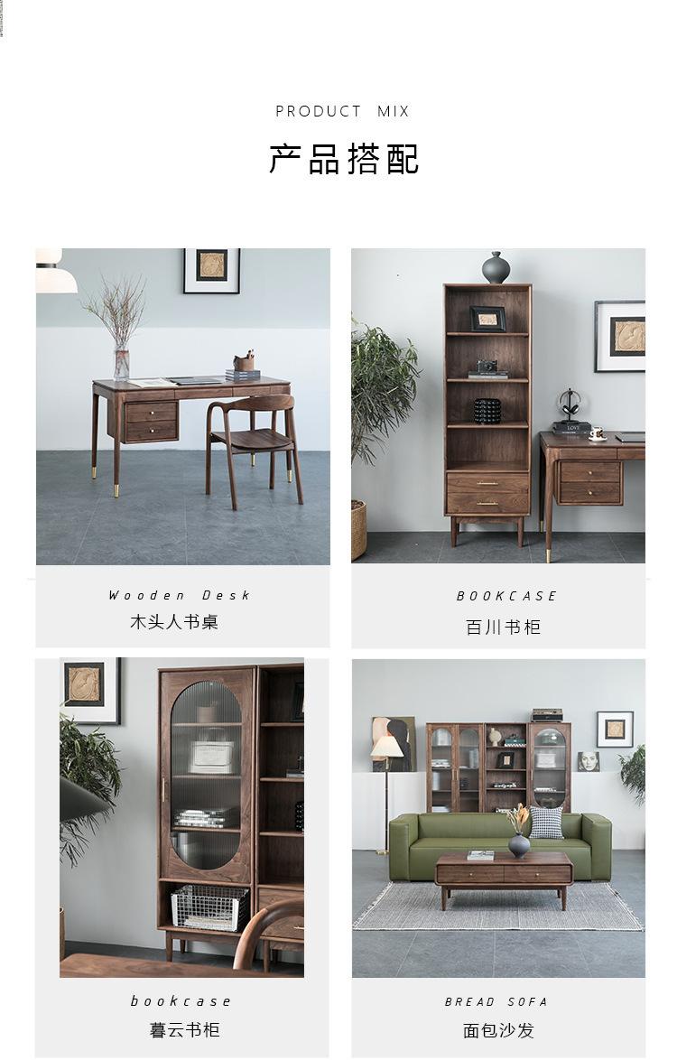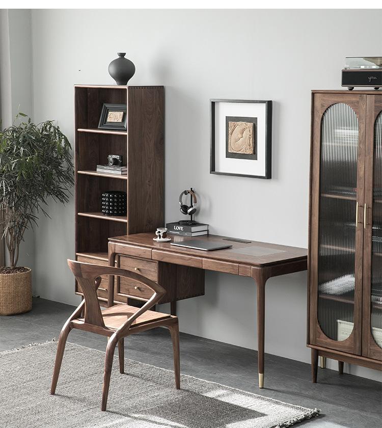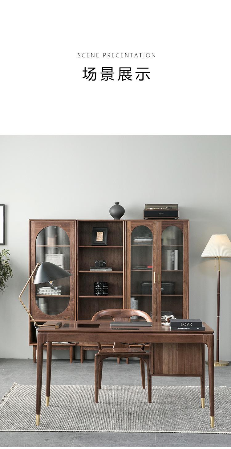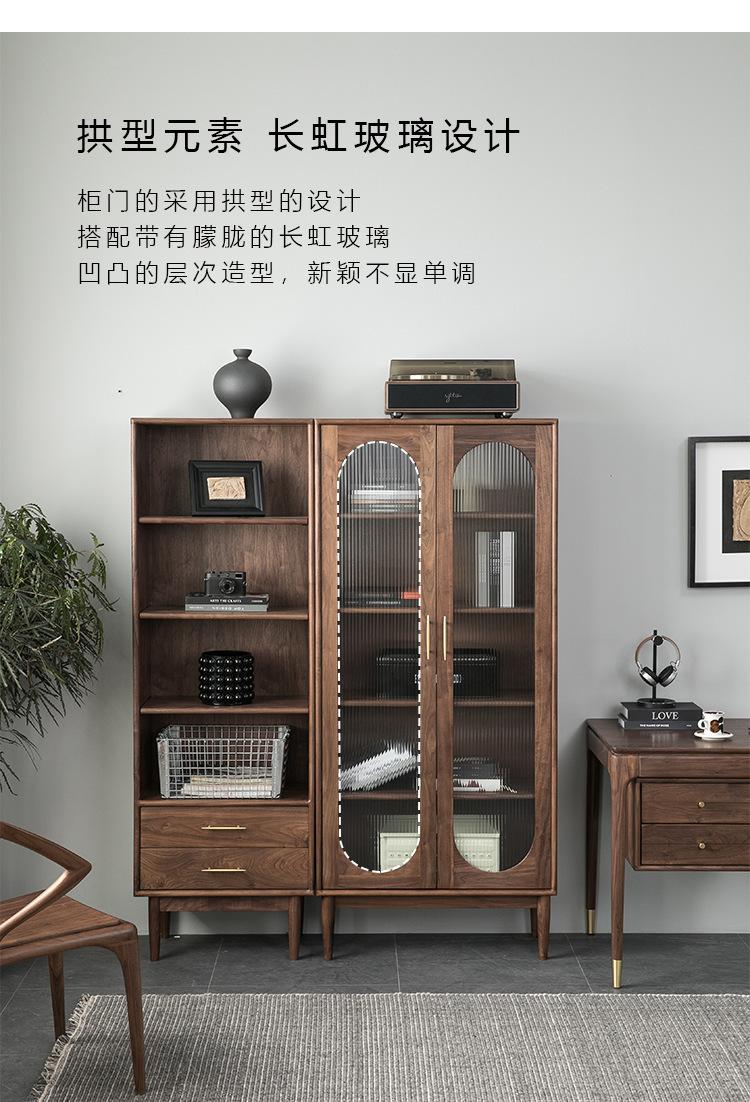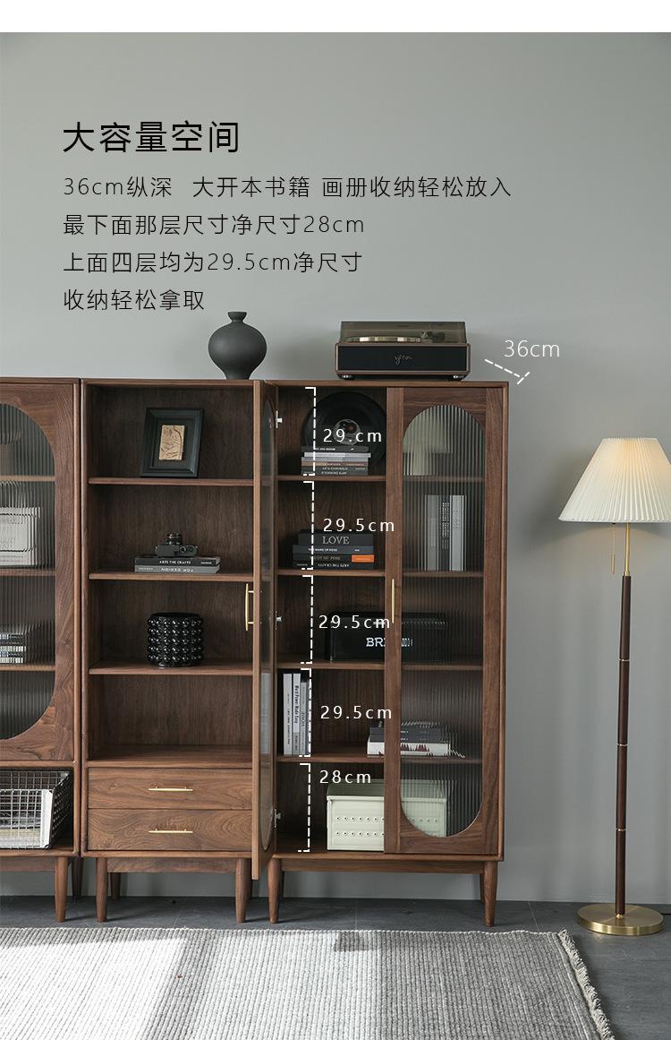 Combinación de librero de madera maciza nórdica con puerta de vidrio, estantería de madera de nogal negro japonés, vitrina moderna minimalista, librero para sala de estar
