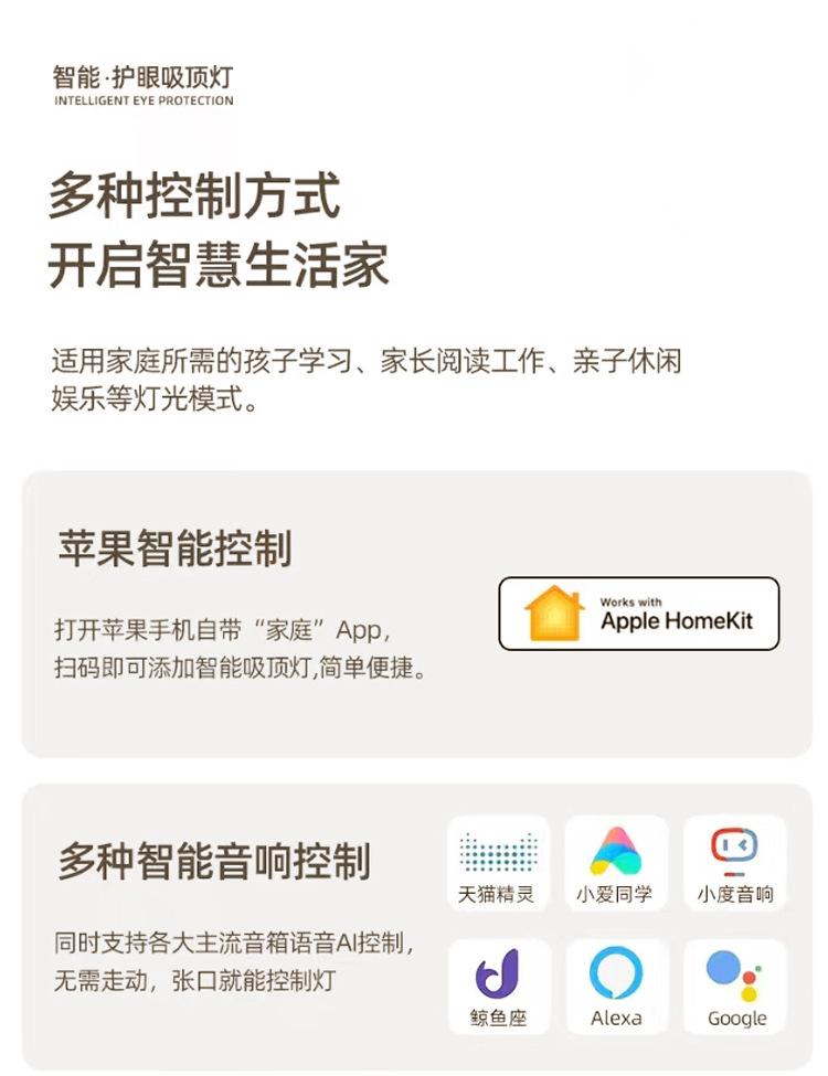 Two-color dimming, Wuji tmall, Support xiaoai classmates control, Apple + full network communication