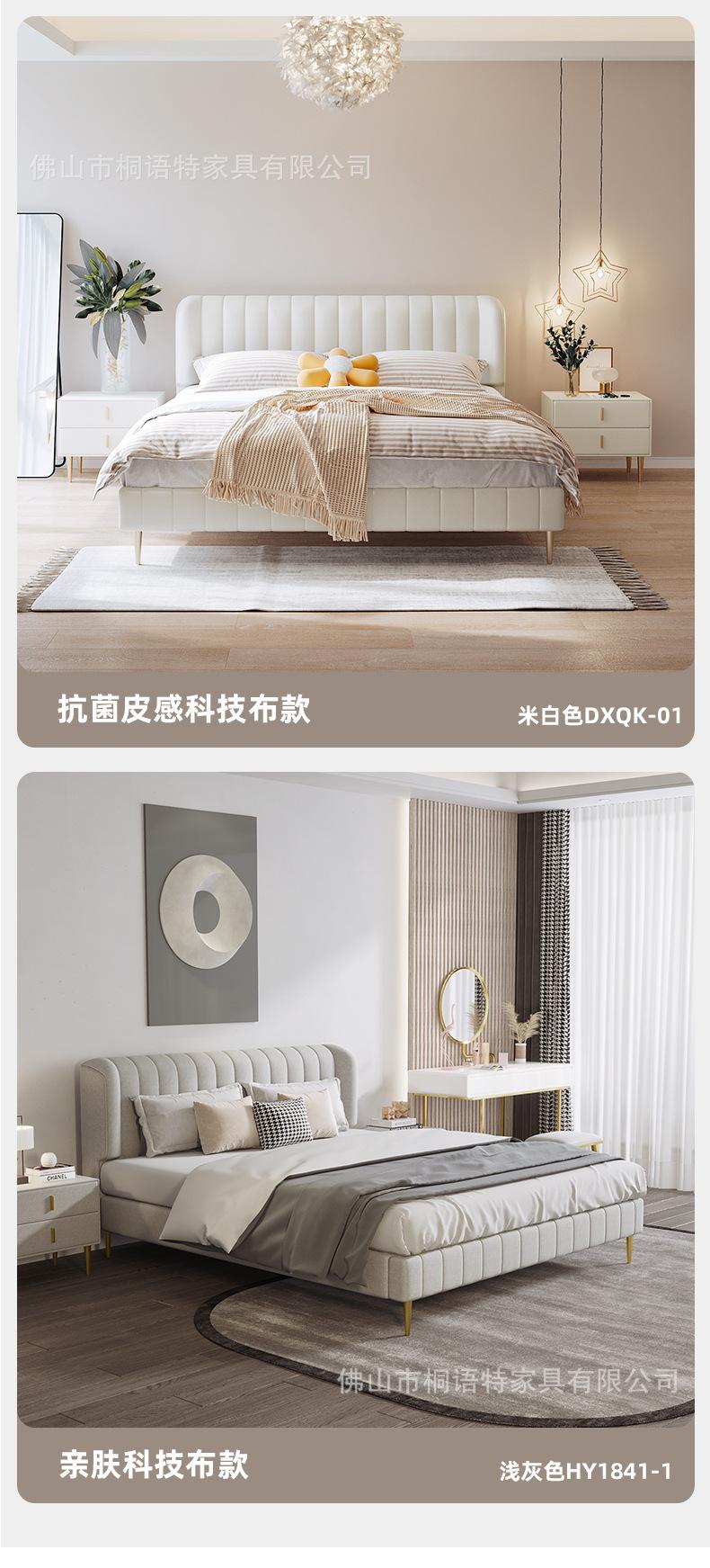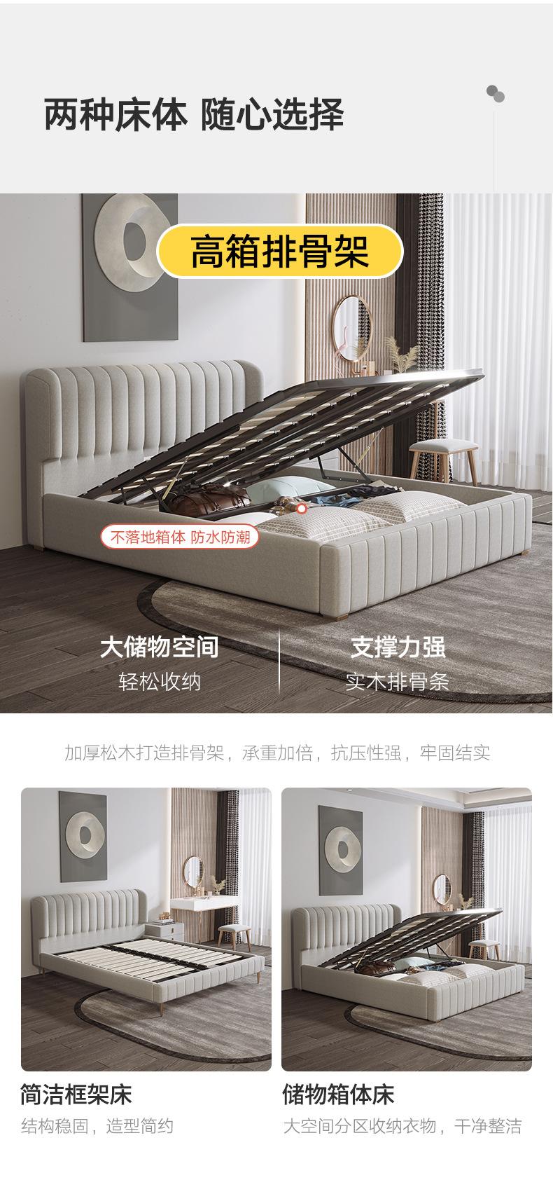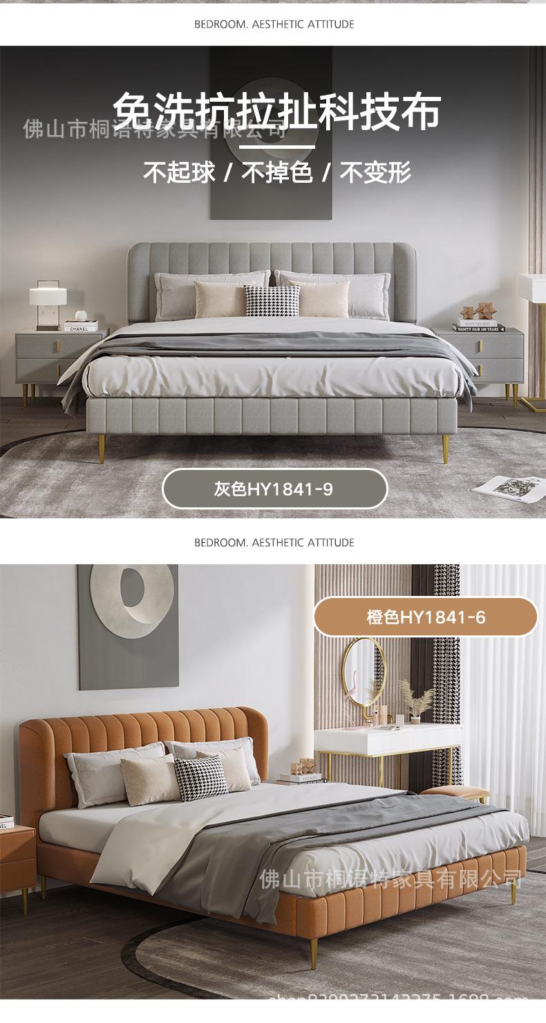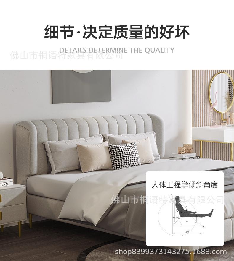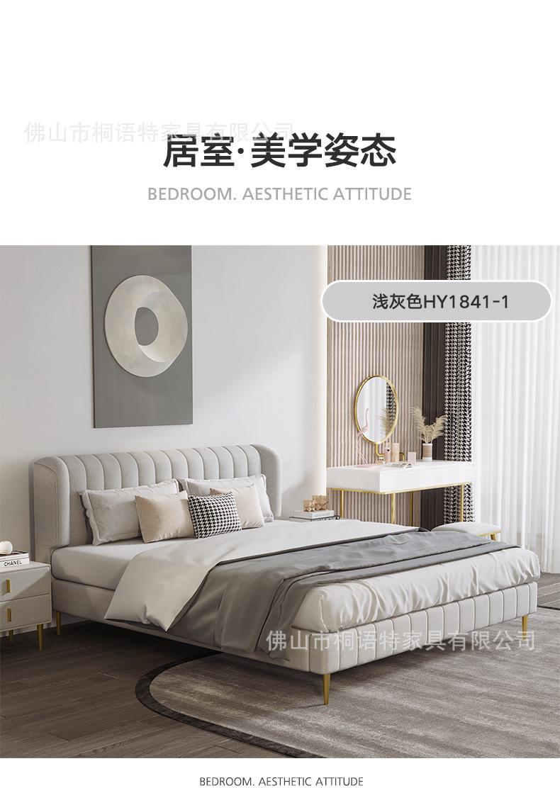 Cama de Tela Moderna Simple Tecnología Sin Lavado Celebridad de Internet Ins Lujo Ligero Cama Doble Dormitorio Principal 1.8 m Cama de Tela Nórdica con Cabecera Blanda