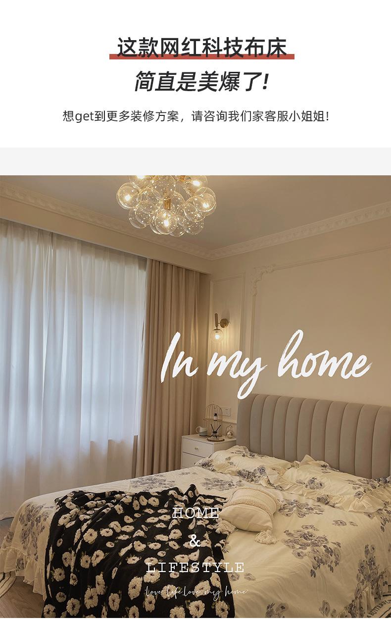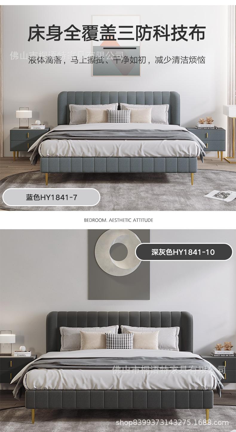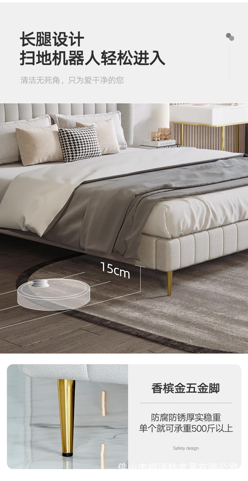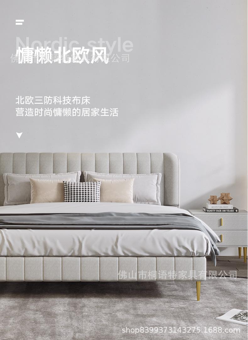 Cama de Tela Moderna Simple Tecnología Sin Lavado Celebridad de Internet Ins Lujo Ligero Cama Doble Dormitorio Principal 1.8 m Cama de Tela Nórdica con Cabecera Blanda