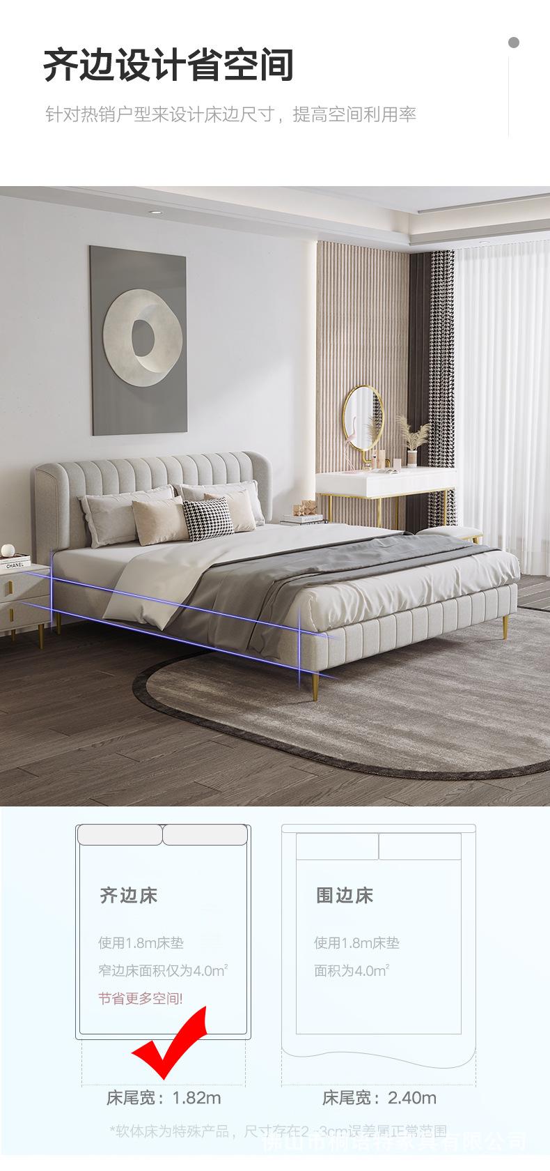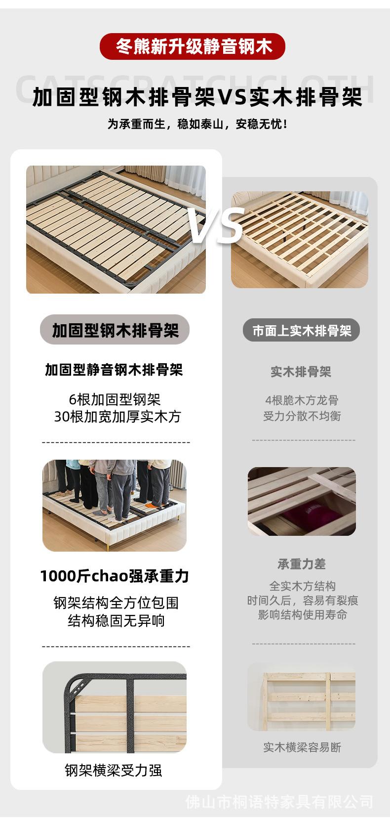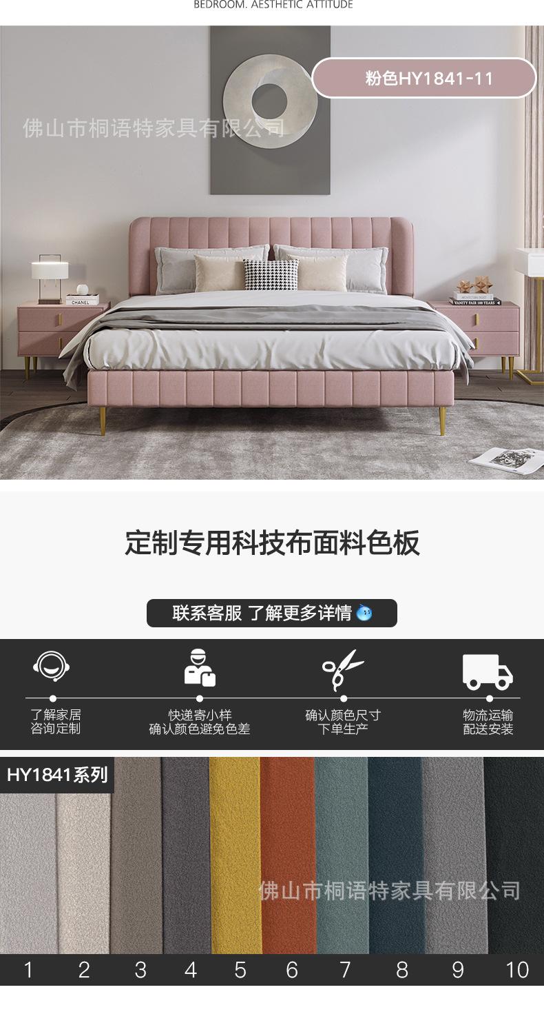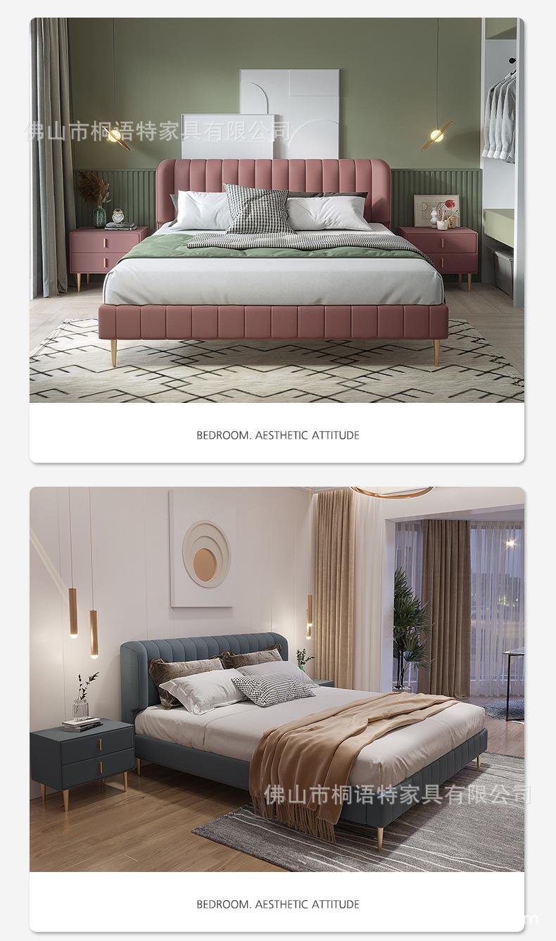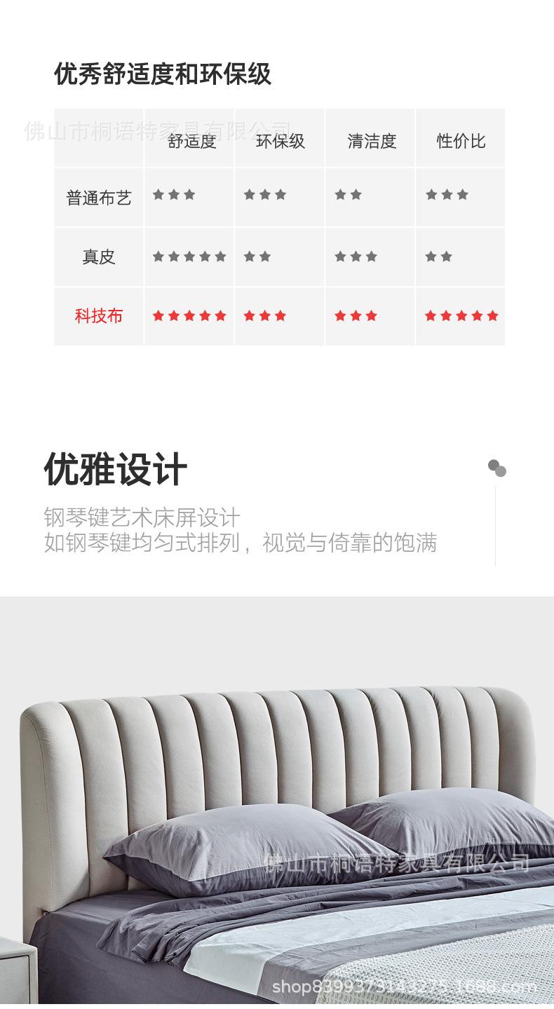 Cama de Tela Moderna Simple Tecnología Sin Lavado Celebridad de Internet Ins Lujo Ligero Cama Doble Dormitorio Principal 1.8 m Cama de Tela Nórdica con Cabecera Blanda