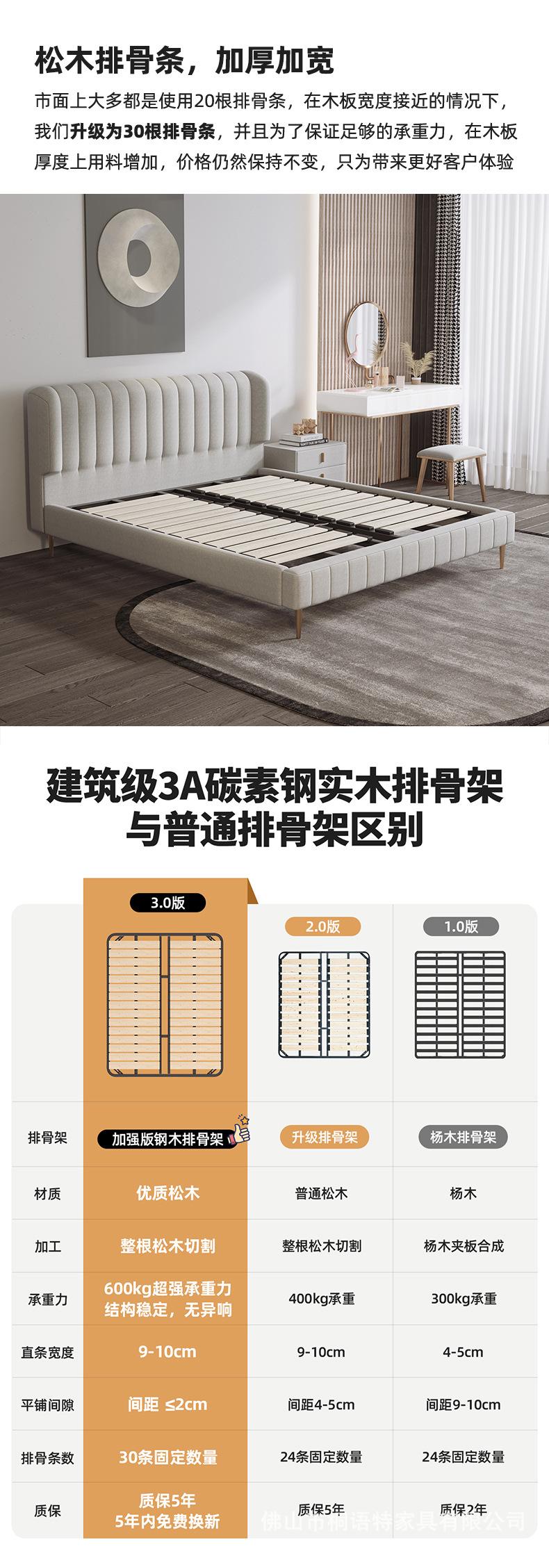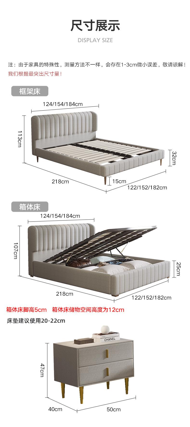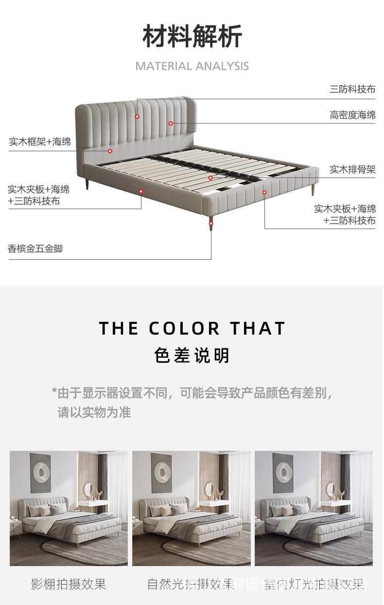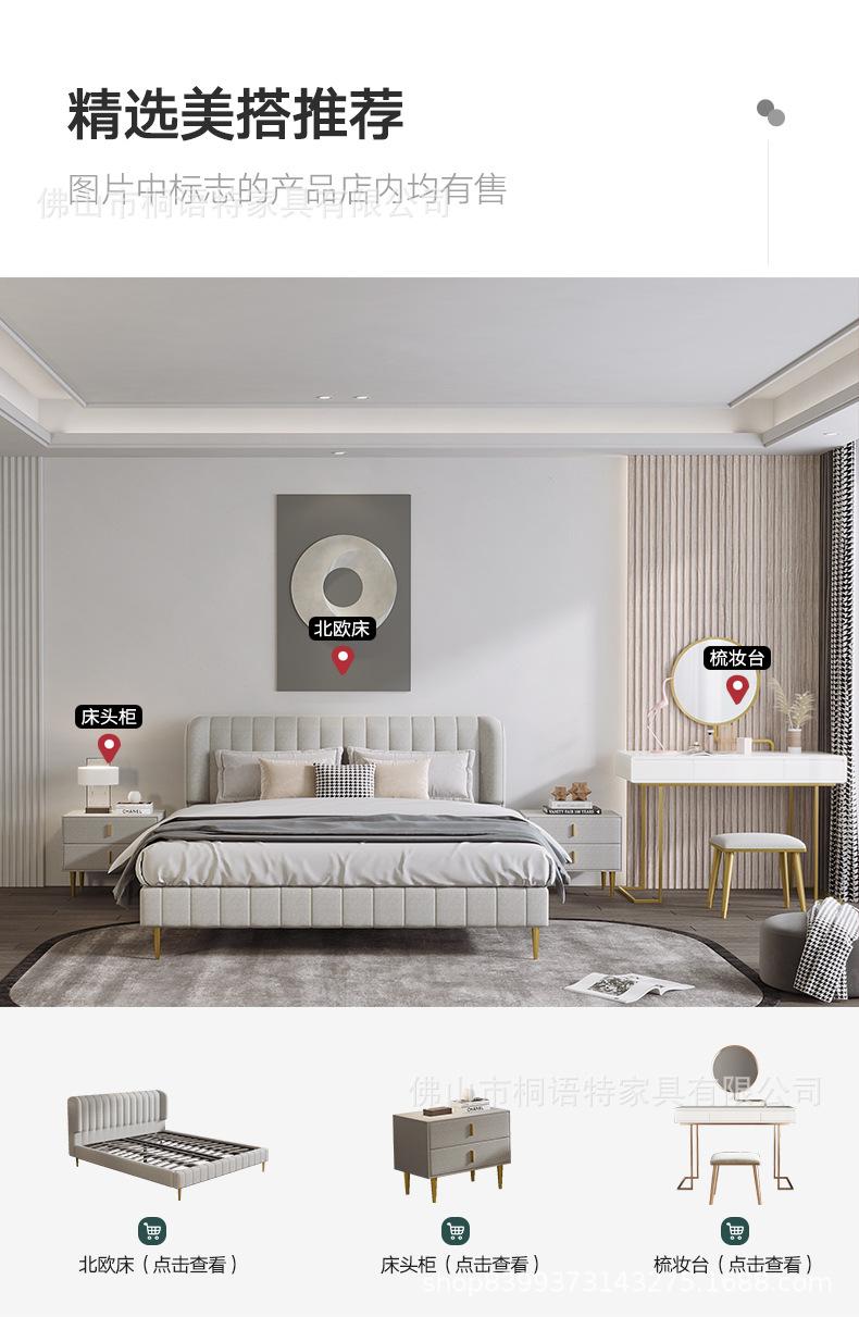 Cama de Tela Moderna Simple Tecnología Sin Lavado Celebridad de Internet Ins Lujo Ligero Cama Doble Dormitorio Principal 1.8 m Cama de Tela Nórdica con Cabecera Blanda