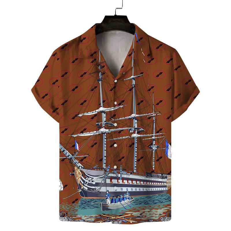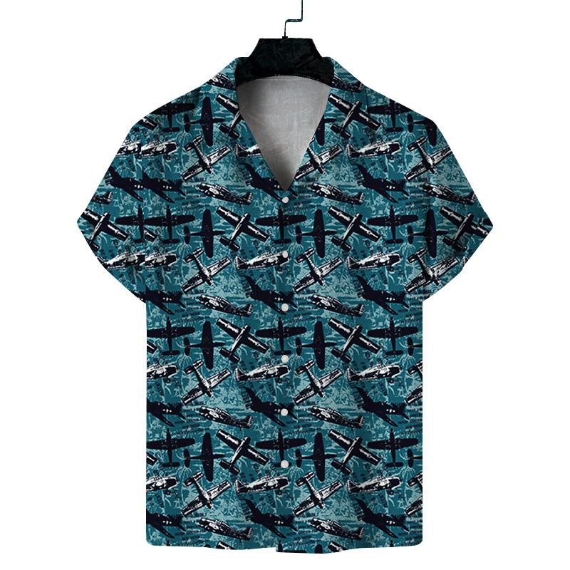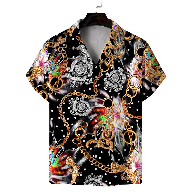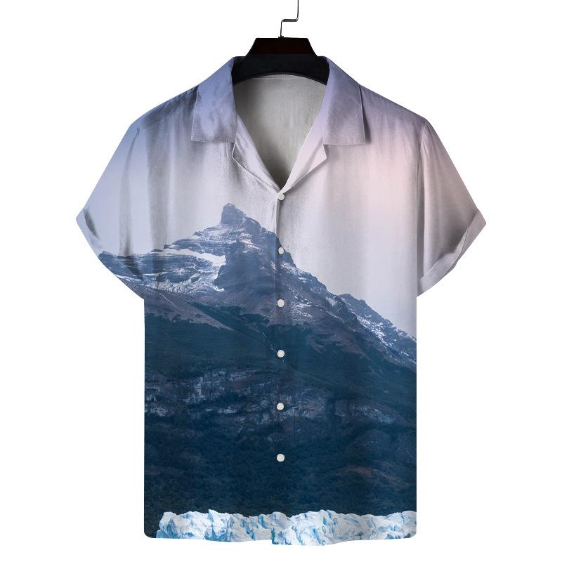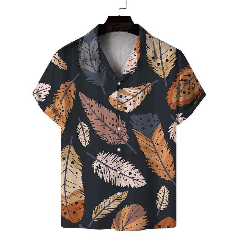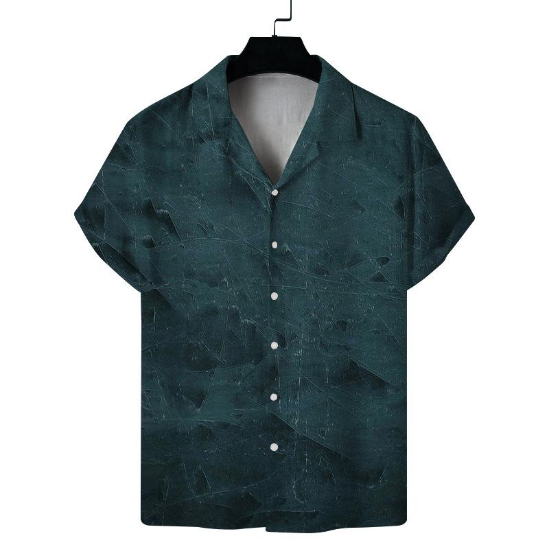 Primavera Caliente Nuevo Comercio Exterior Hombre Impresión Digital Manga Corta Cuello Cubano Hombre Camisa Casual Hawaiana Holgada