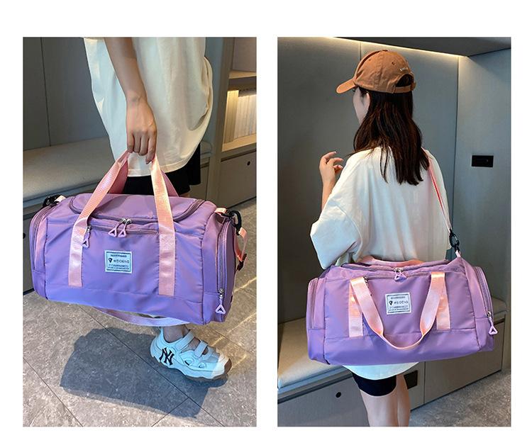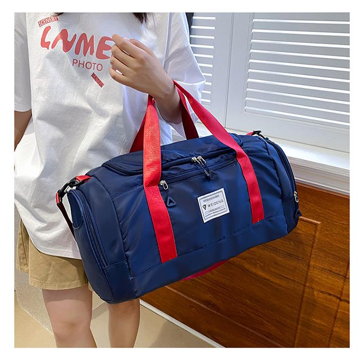 Bolsa de gimnasio para mujer, mochila deportiva separada para ropa seca y húmeda, para natación de corta distancia, ligera, bolsa de lona con bloques de color, bolsa de viaje de gran capacidad