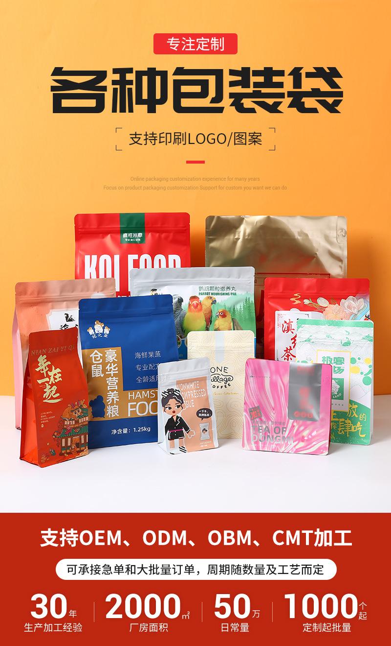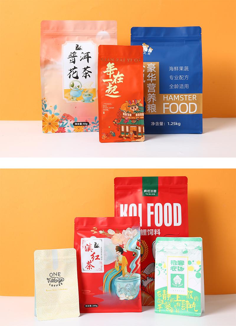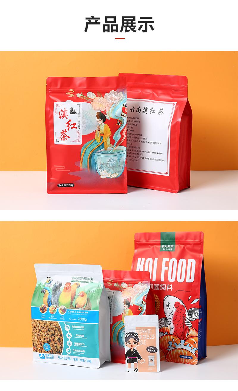 Bolsa de Embalaje de Alimentos de Plástico PET Personalizada Sellado por Tres Lados Bolsa de Embalaje de Té Sellado por Ocho Lados Bolsa Ziplock para Comida de Gato Comida de Perro