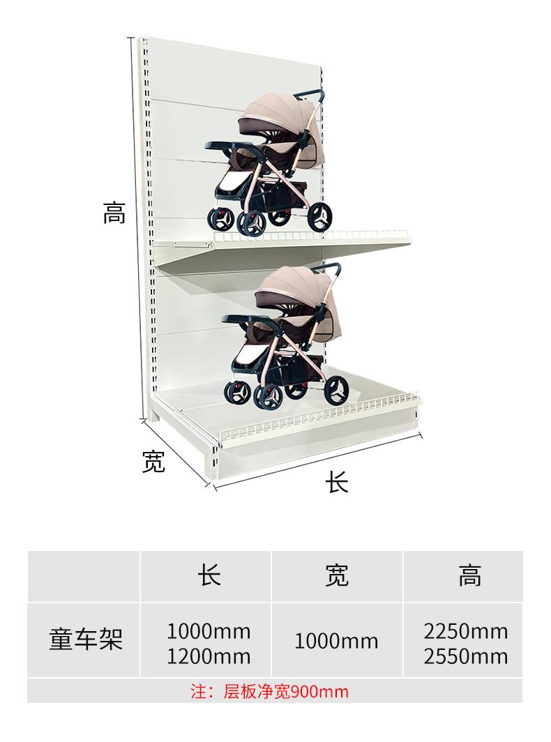 Estante de exhibición de silla de ruedas blanca multicapa de tienda materna e infantil de alta gama, estante de productos ensanchado, estante de exhibición de cochecito de equilibrio para automóvil