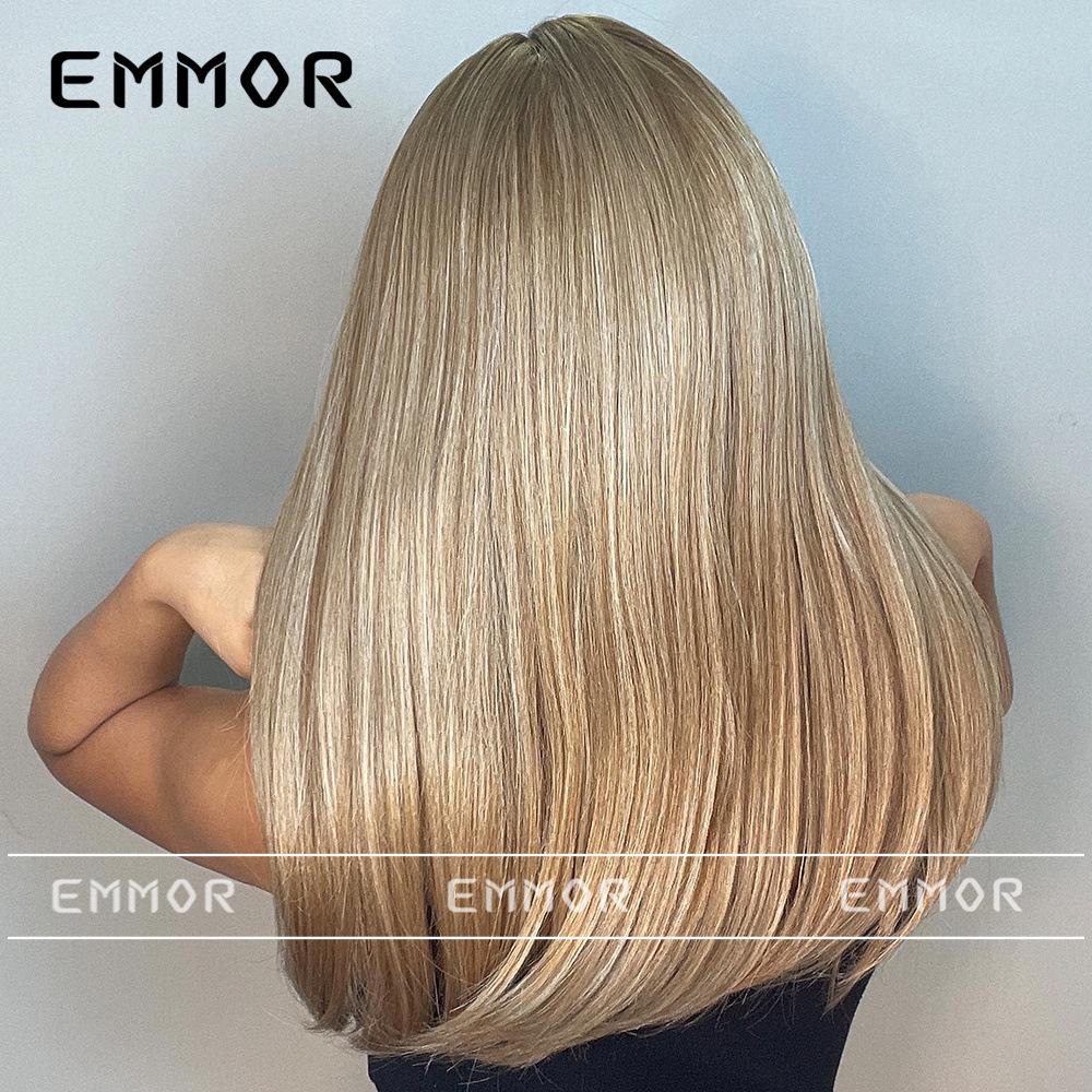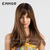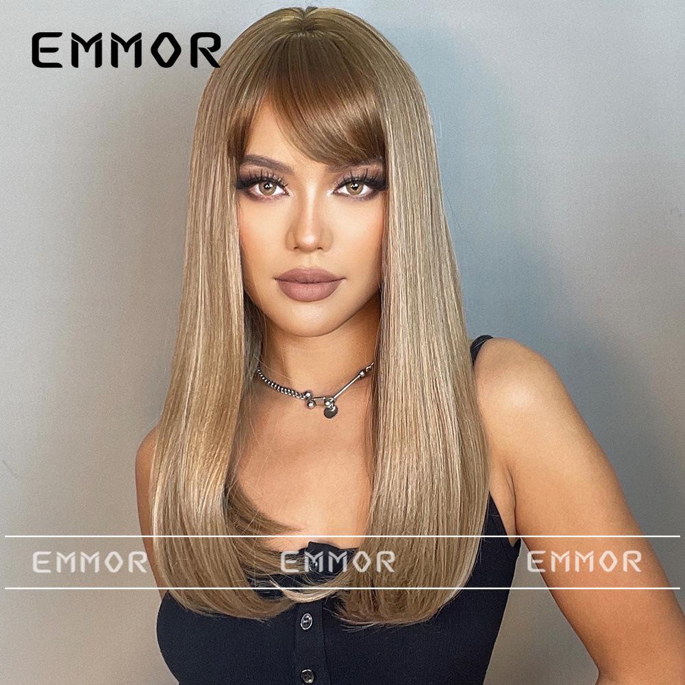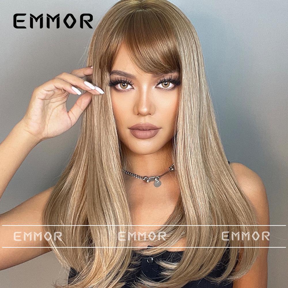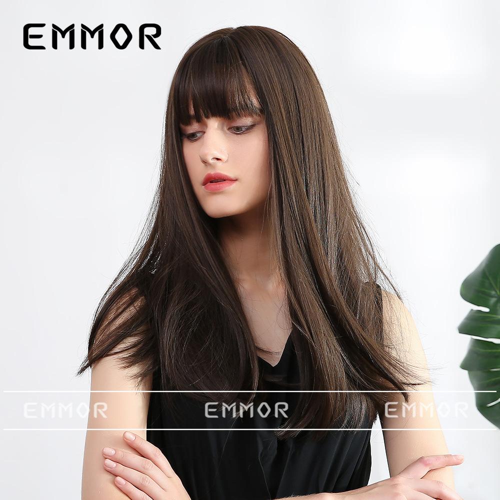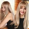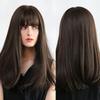Pelucas de cabello largo y liso con flequillo, estilo europeo y americano, para mujer, de cabeza completa, con suministro directo de fábrica.