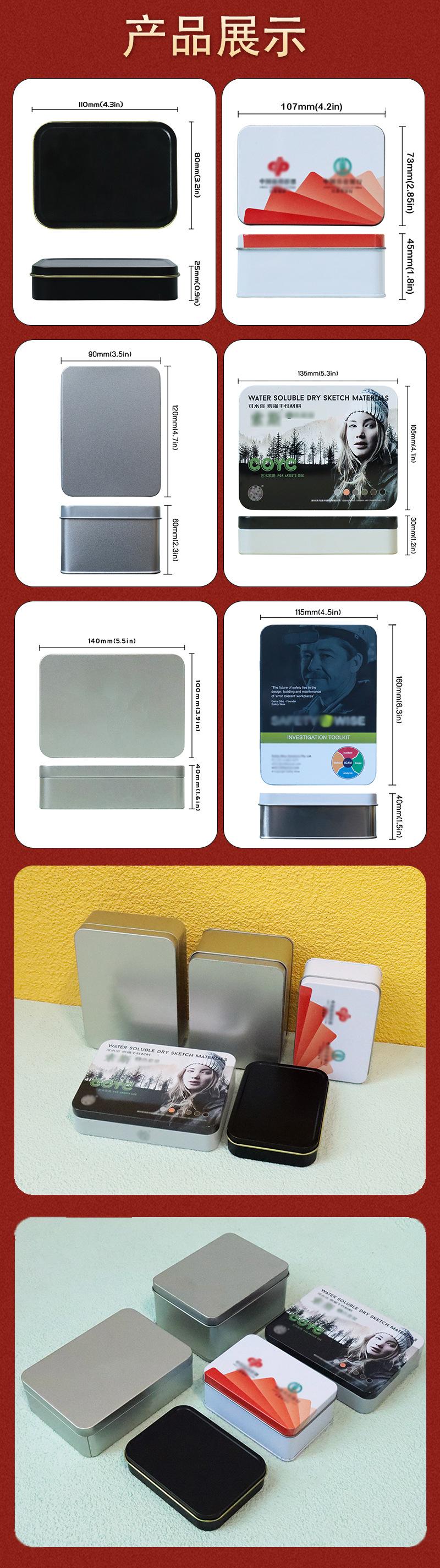 Caja rectangular de hojalata personalizada Negra esmerilada Caja de hojalata para cartas de juego Embalaje Caja de hierro Almacenamiento de juguetes de madera