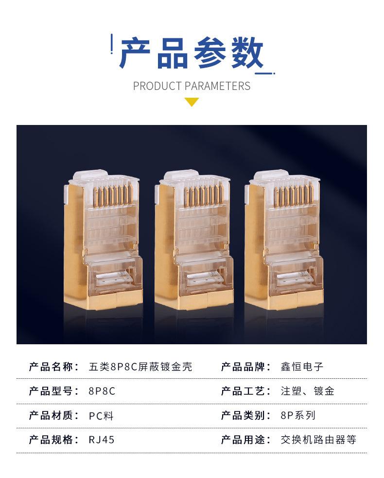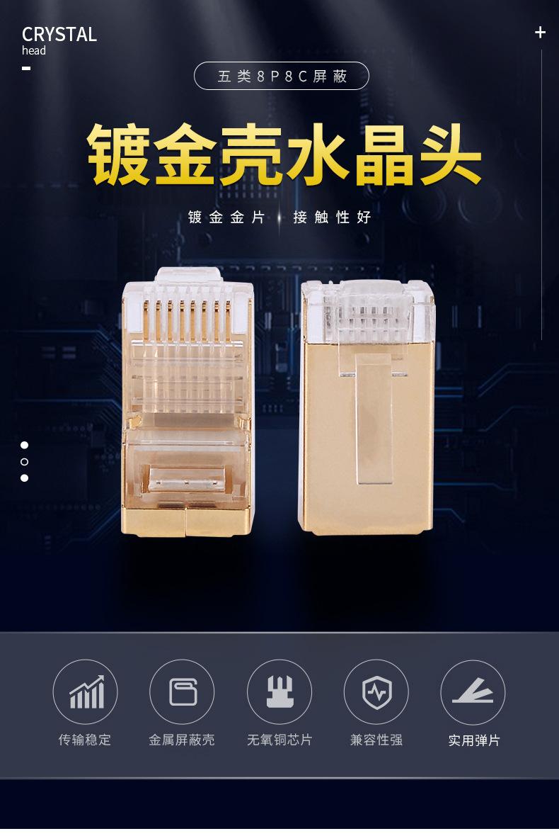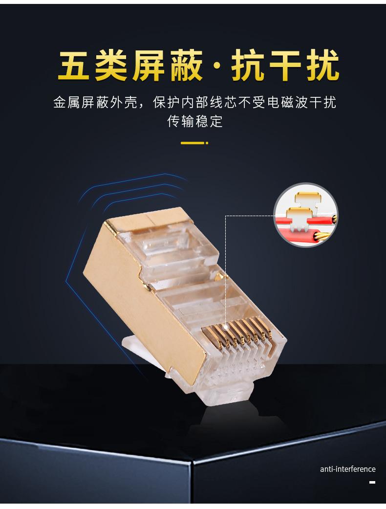 La fábrica SOURCE suministra un conector Crystal Head RJ45 de cinco categorías 8P8C con carcasa chapada en oro y ocho núcleos de red de cinco categorías.