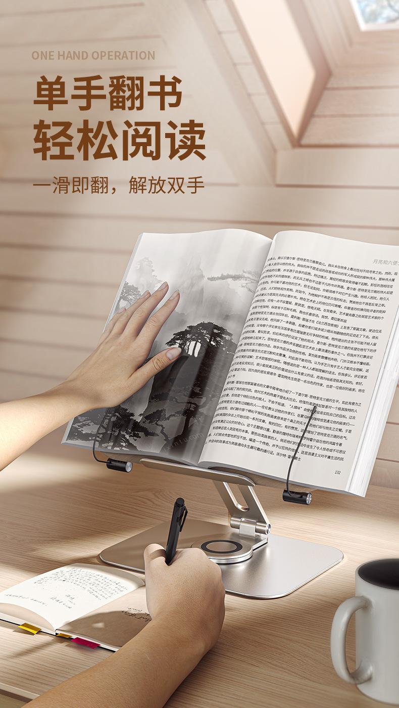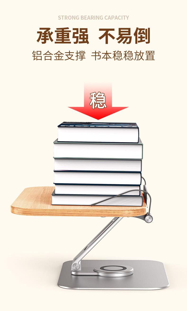 Estante de lectura giratorio de 360 grados, estantería de lectura para estudiantes con elevación de escritorio, estantería de aleación de aluminio, soporte para tableta y computadora