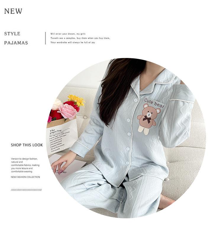 Pijama Nuevo de Otoño e Invierno para Mujeres Embarazadas Pijama de Lactancia para Mujeres Embarazadas Sándwich de Algodón Aire Espesado de Octubre Ropa Mensual Postparto