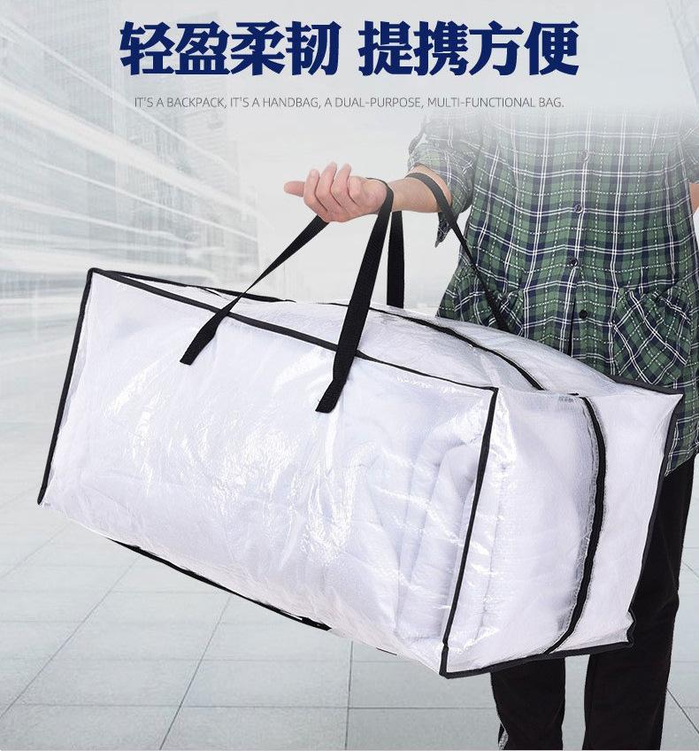 Bolsa tejida, bolsa de mudanza, translúcida, portátil, de PP, de gran capacidad, bolsa de almacenamiento para el hogar, impermeable, bolsa con cremallera para ropa
