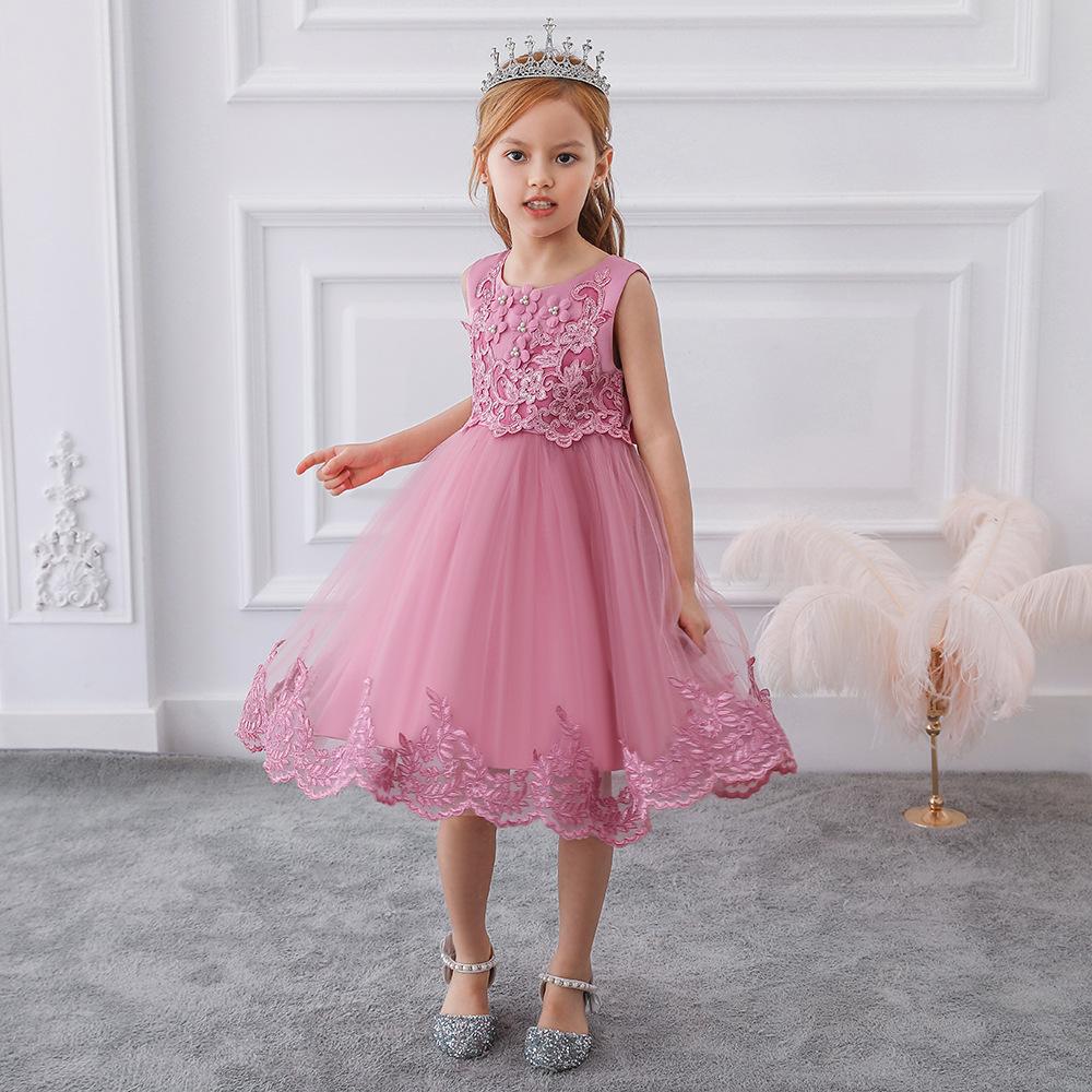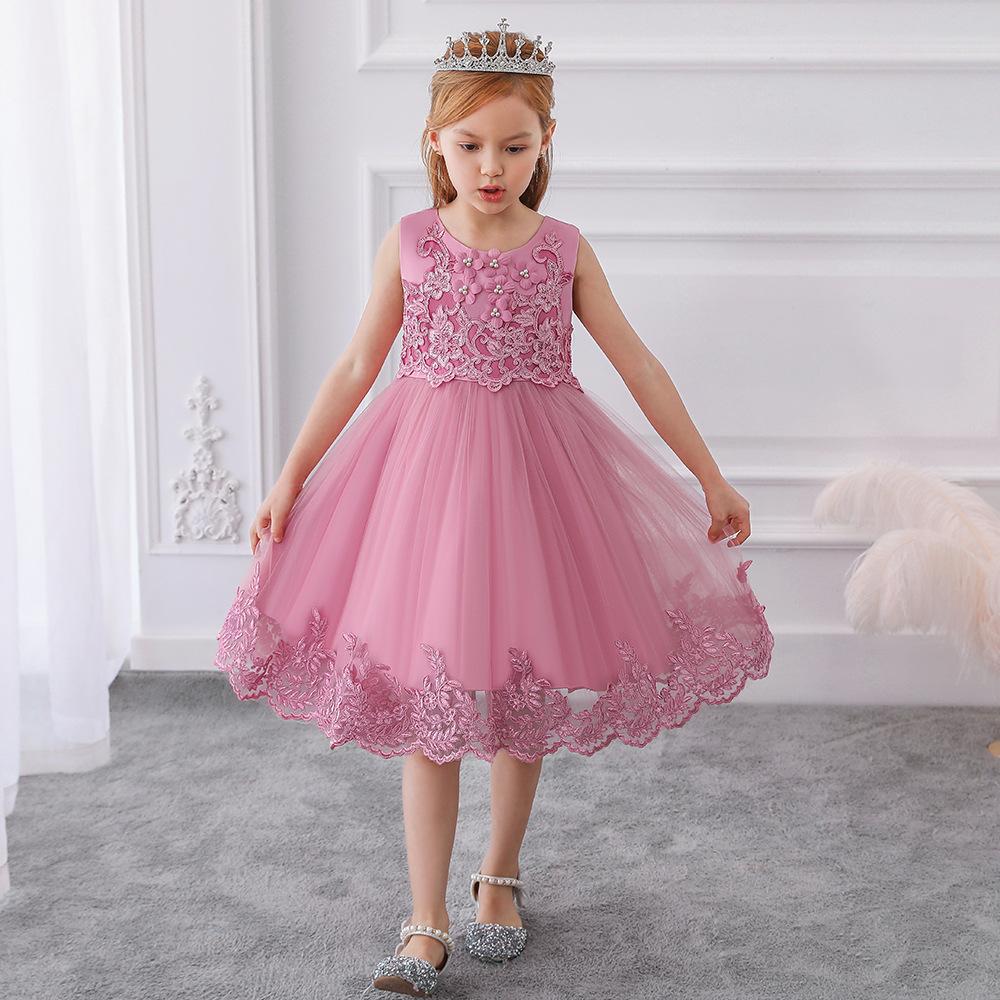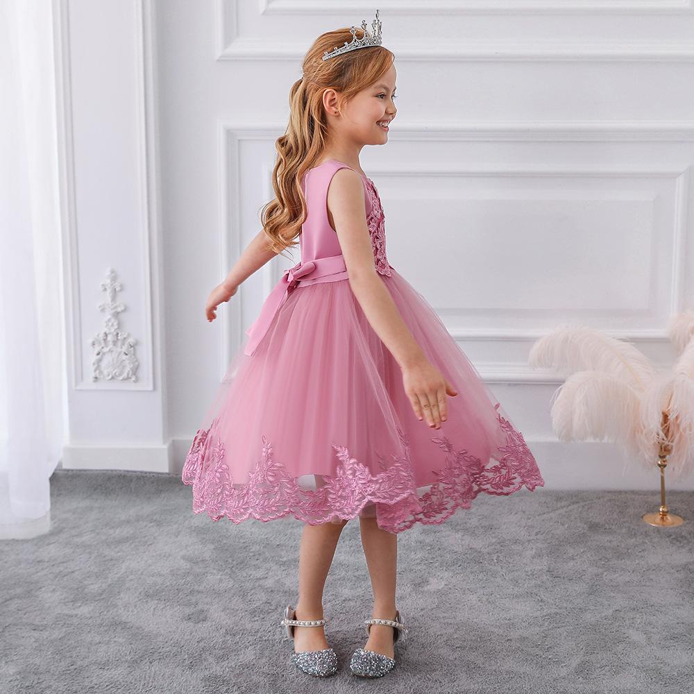 Amazon Europa y Estados Unidos Nuevo Vestido Chino para Niñas Encaje Esponjoso Vestido de Princesa Vestido de Niña de las Flores Vestido de Niña para Espectáculo