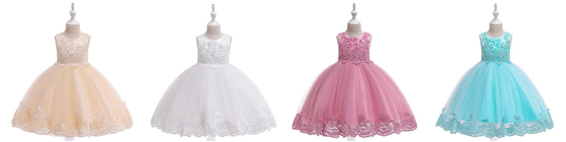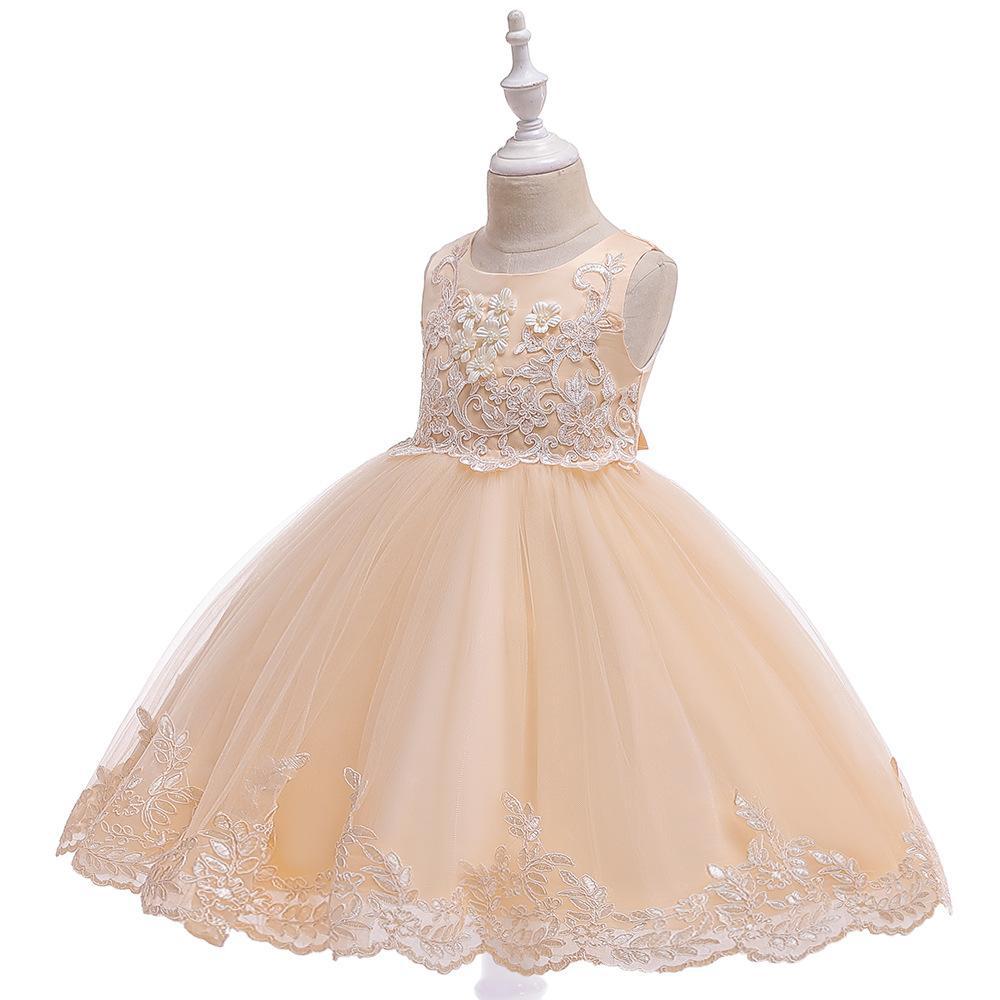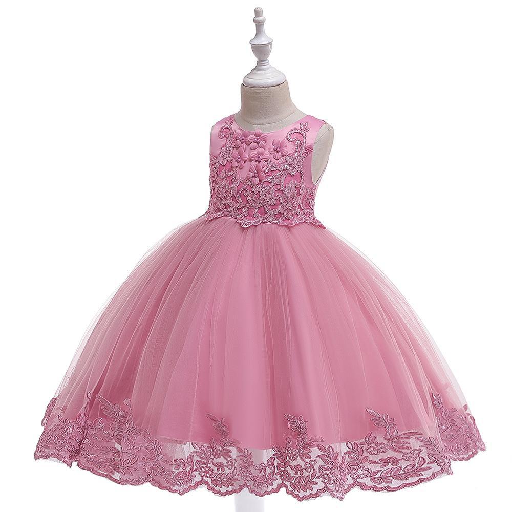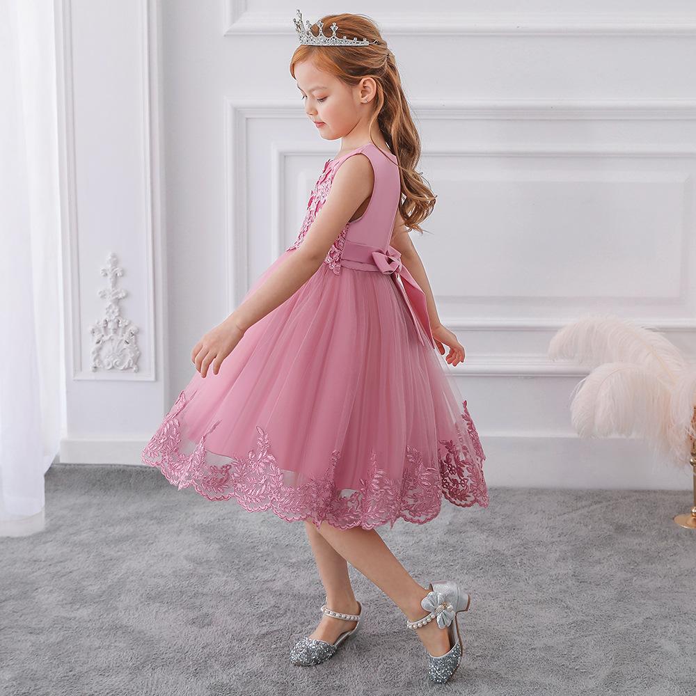 Amazon Europa y Estados Unidos Nuevo Vestido Chino para Niñas Encaje Esponjoso Vestido de Princesa Vestido de Niña de las Flores Vestido de Niña para Espectáculo