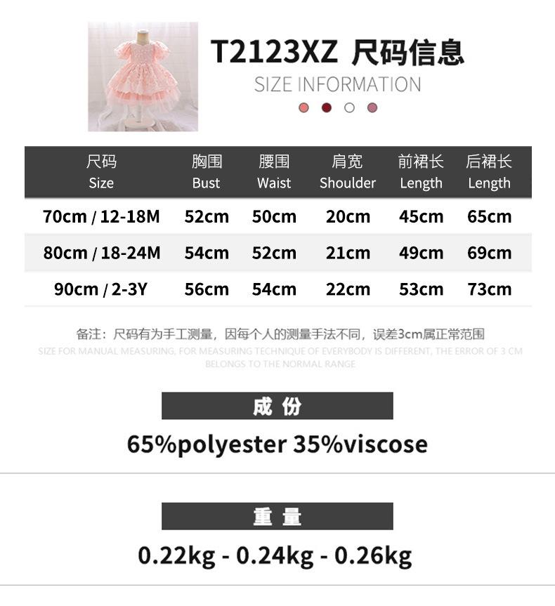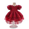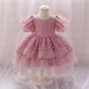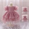 Vestido infantil, vestido de princesa, vestido infantil con borde cruzado, vestido de bebé de un año con mangas abullonadas y lazo, vestido de niña de estilo occidental