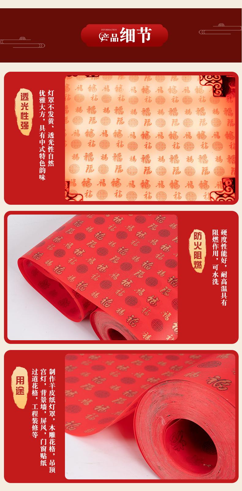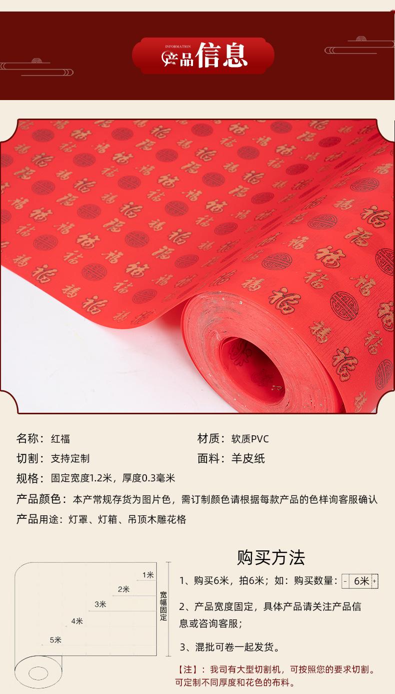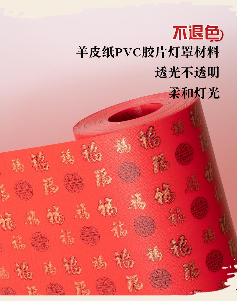 Nuevo material de pantalla de lámpara retro chino Fondo rojo Palabra Dorada de Bendición película de luz transparente Tallado en madera a cuadros Estilo chino pantalla de papel pergamino