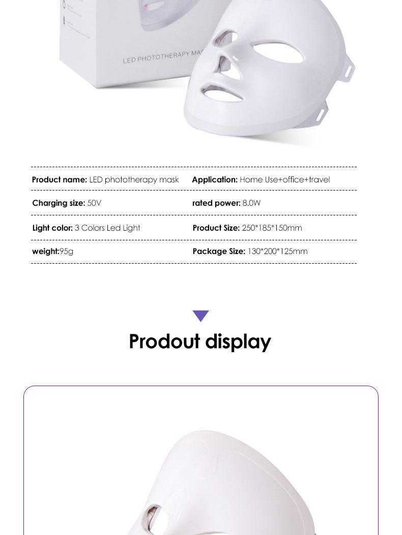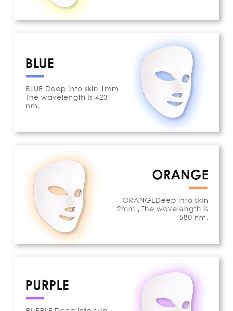 Fade wrinkles, Anti-acne light print, Skin rejuvenation and brightening, Daylight reduction