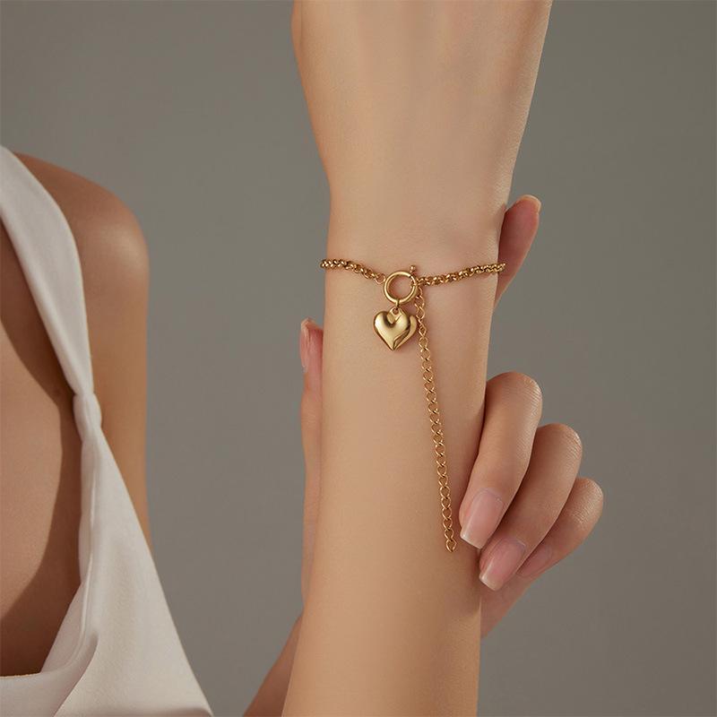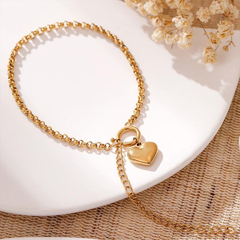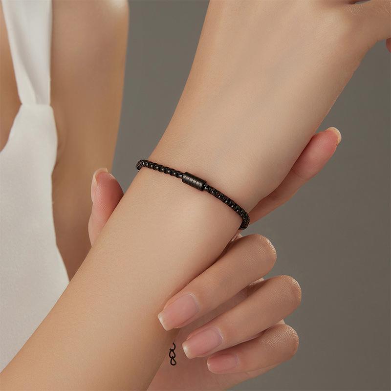 Pulsera de oro de 18 quilates con diseño de corazón de amor, estilo europeo y americano, con personalidad sencilla, moderna y cuadrada, con perlas negras, fabricante de fuentes.