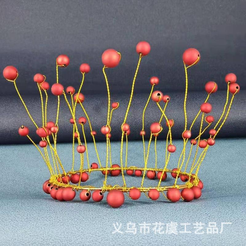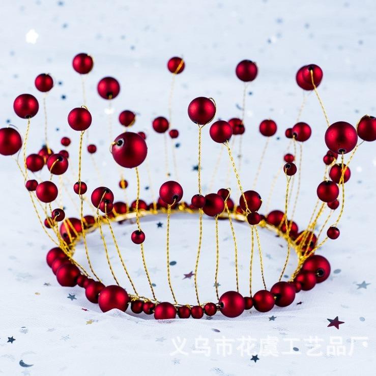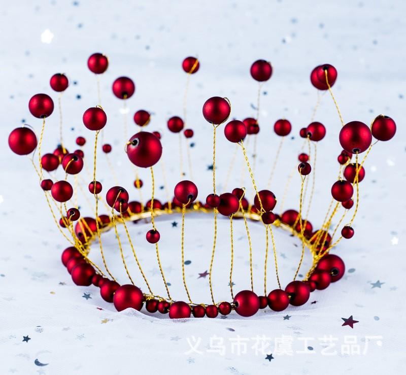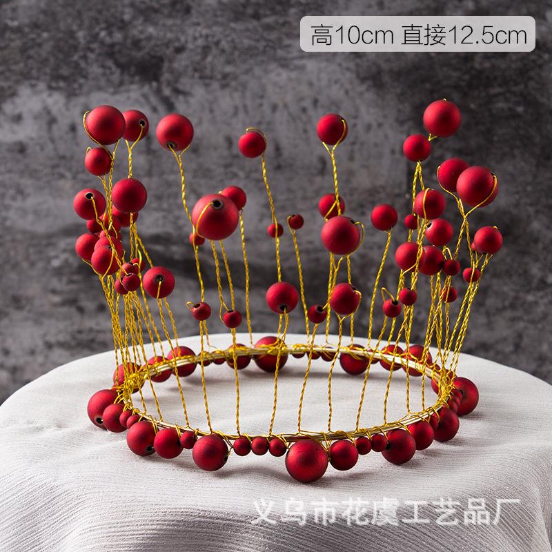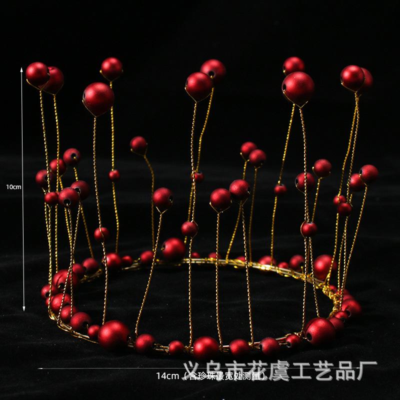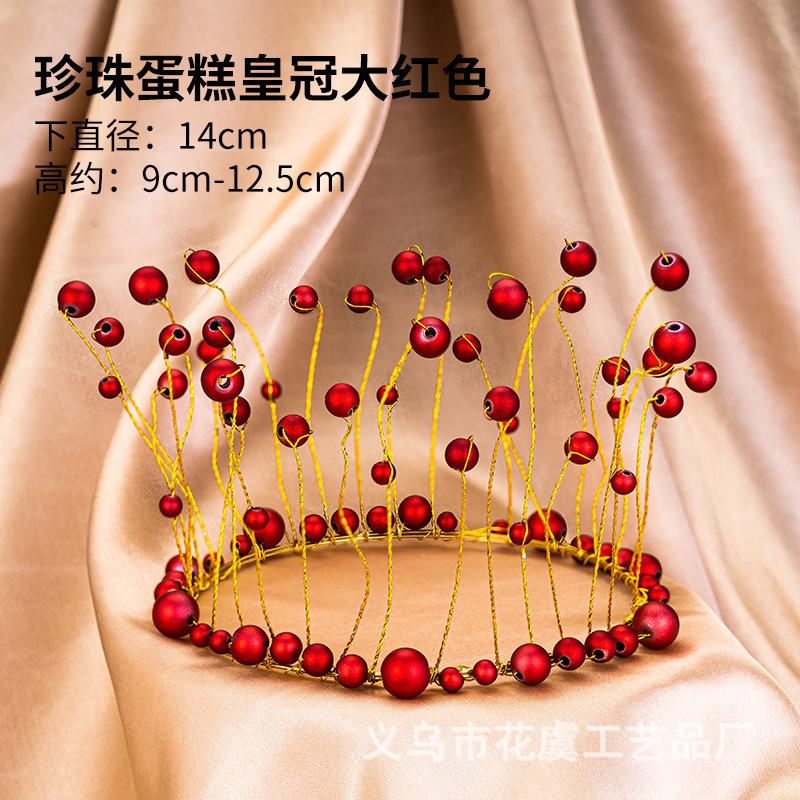 Adornos Personalizados Oem para Decoración de Pastel de Cumpleaños Redondos Corona de Perlas Rojas Adornos para Decoración de Pastel de Cumpleaños