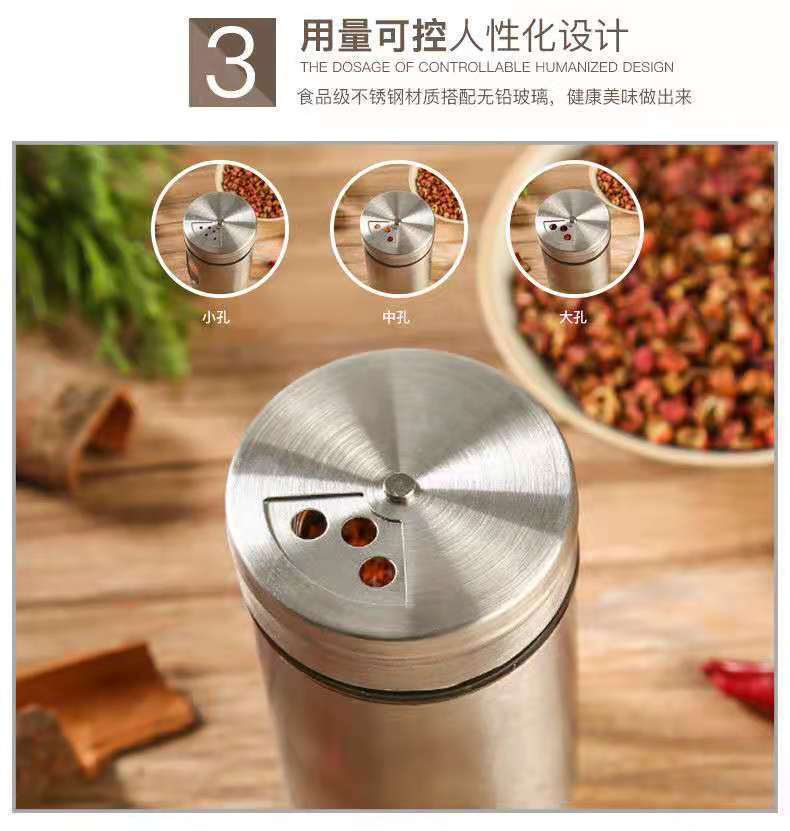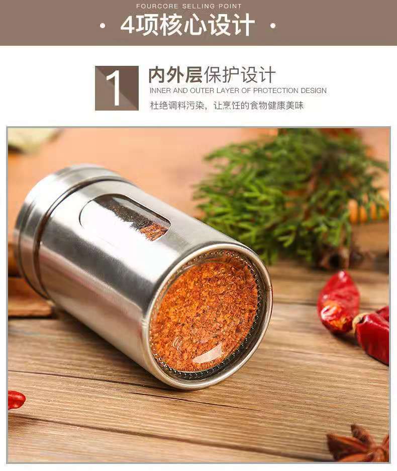 Compra Botella de condimento de acero inoxidable, herramientas para barbacoa al aire libre, botella de pimienta, tarro para espolvorear comino en polvo, tarro para palillos de dientes al por mayor en Joom.pro
